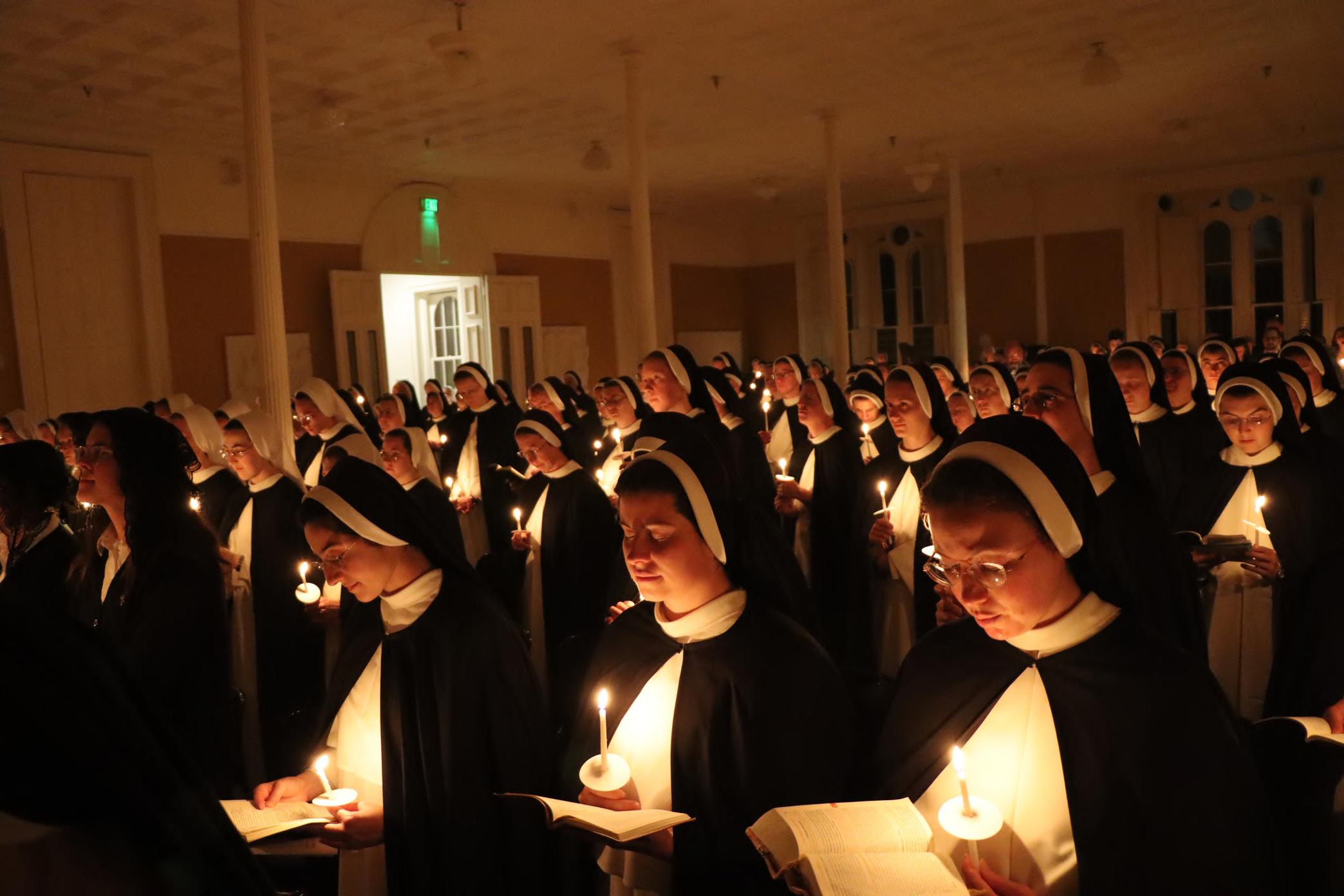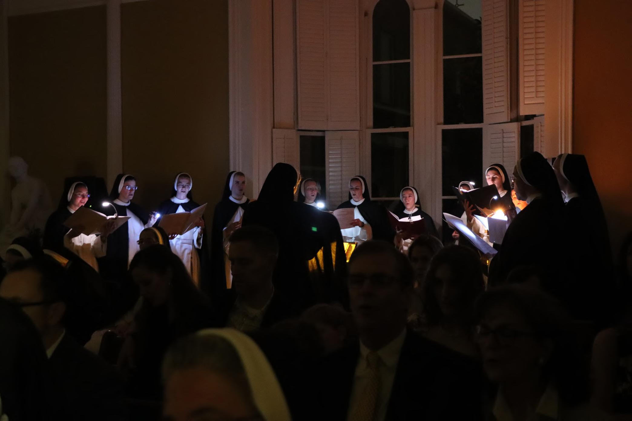 This year's celebration of Easter was unique at the Motherhouse Because of water damage due to a pipe that burst at Christmas, the sisters have been using the 1888 chapel (the Oratory) since January. With over 70 sisters coming home for the Triduum and Easter, the sisters moved into the Recreation Hall for the liturgies