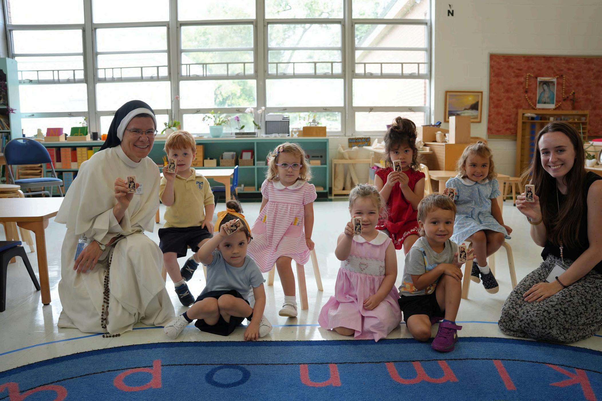 BELOW/SisterNicholasMarieispicturedwithsomeofthestudentsat SaintCeciliaAcademyinNashville,Tennessee