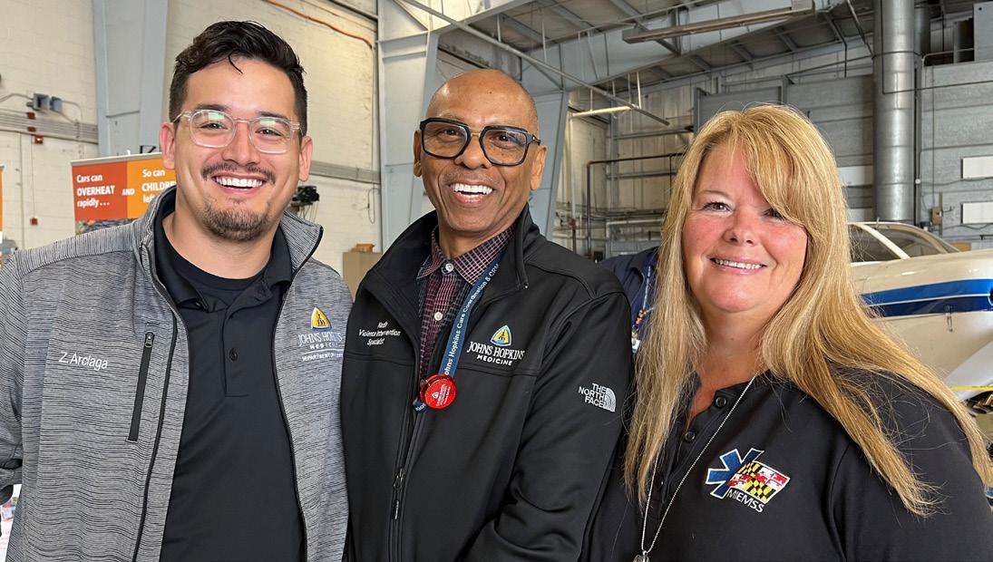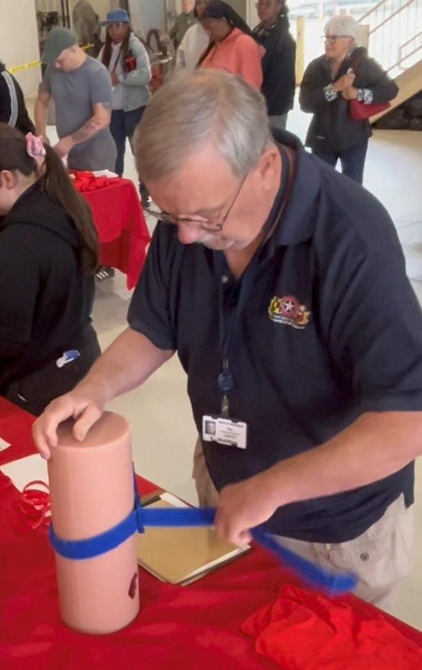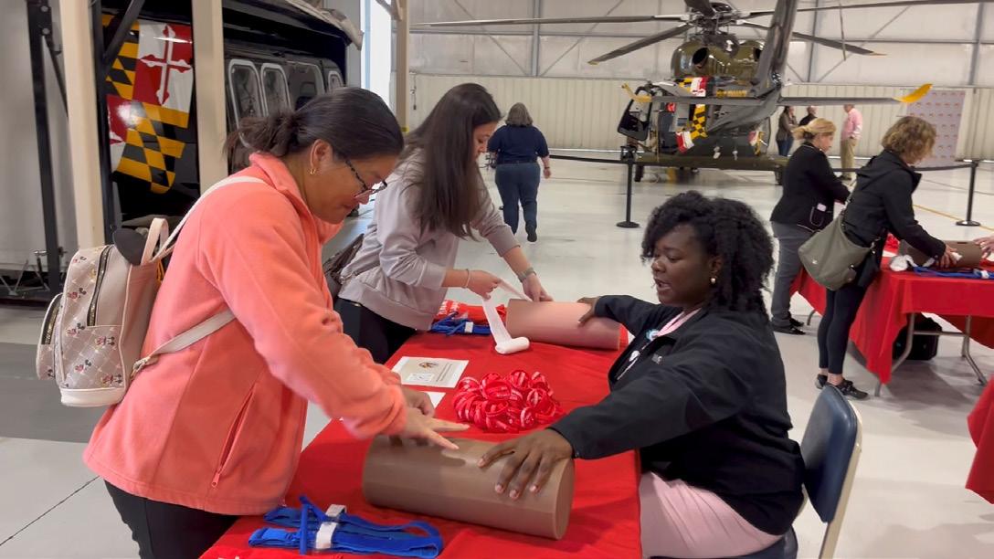 Maryland's trauma centers marked this year's National Stop the Bleed Day with a marathon training session designed to empower the public with the basic knowledge and skills necessary to address bleeding emergencies prior to the arrival of first responders. Maryland State Police Aviation Command’s Trooper 1 played host to the all-day event, which featured both didactic and practical instruction, safety and injury prevention stations, and a visit from the Baltimore Orioles Bird. Upon completion, each participant took home a certificate and a Stop the Bleed Kit, courtesy of the Maryland Committee on Trauma. Learn more at https://mdcot.com/stop-the-bleed/. n