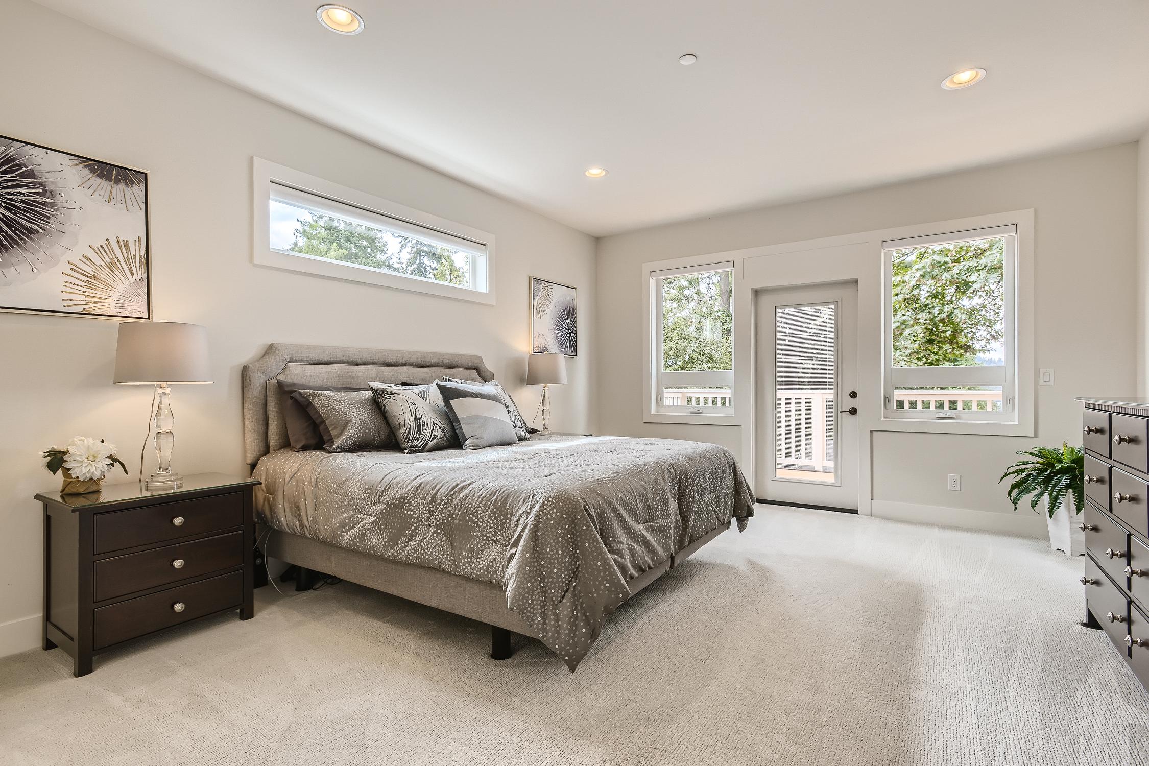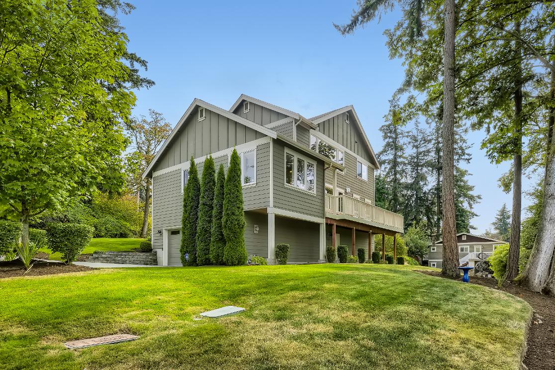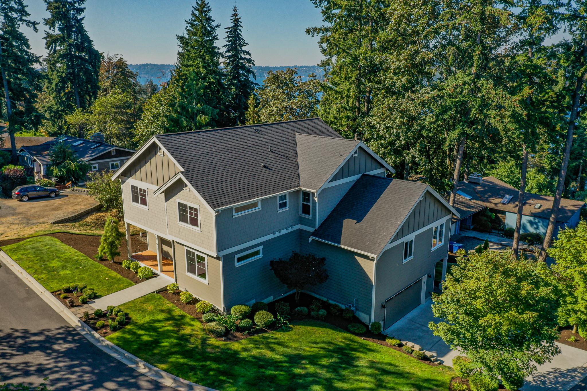 Just listed! Light-filled Northwest contemporary home with beautiful lake views & upscale finishes throughout! 9' ceilings on main, hardwood floors, upgraded plush carpet & luxe baths. Spacious living room w/gas FP & walls of windows to enjoy the wonderful views. Gourmet kitchen w/SS appliances, 5-burner gas range, wine fridge, island w/eating bar. Adjoining eating area with access to the expansive deck - a great place to watch the boats go by & enjoy amazing sunsets. 5 bedrooms, 3.75 baths w/ primary on main w/5-piece bath, washer/dryer hook-up plus option for primary up w/private bath. Large bonus room up, dual-zone AC, custom blinds w/remotes, 2+ car garage + 288 sf unfinished storage. Easy access to 405/I90 -10 minutes to Bellevue/Mercer Island.