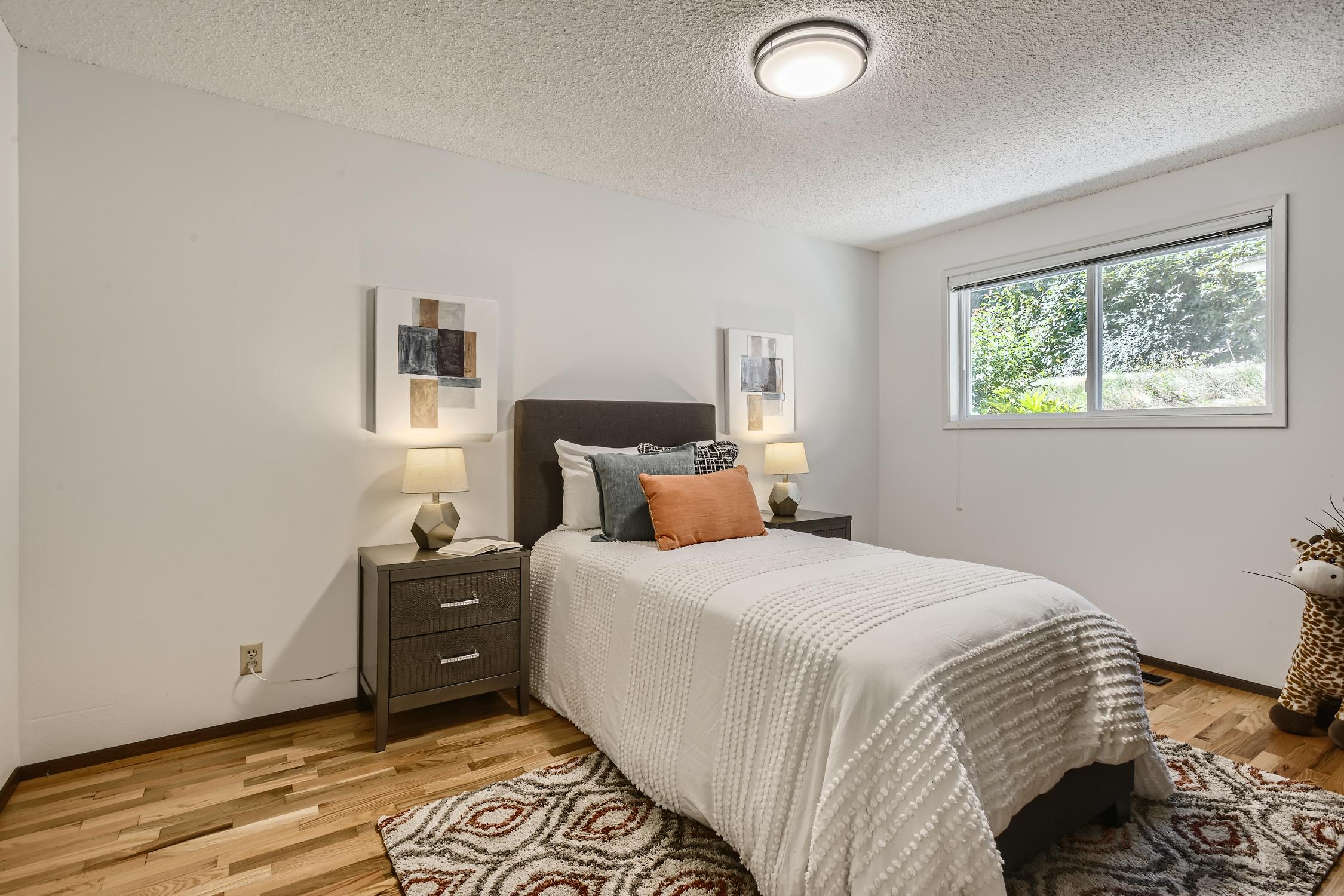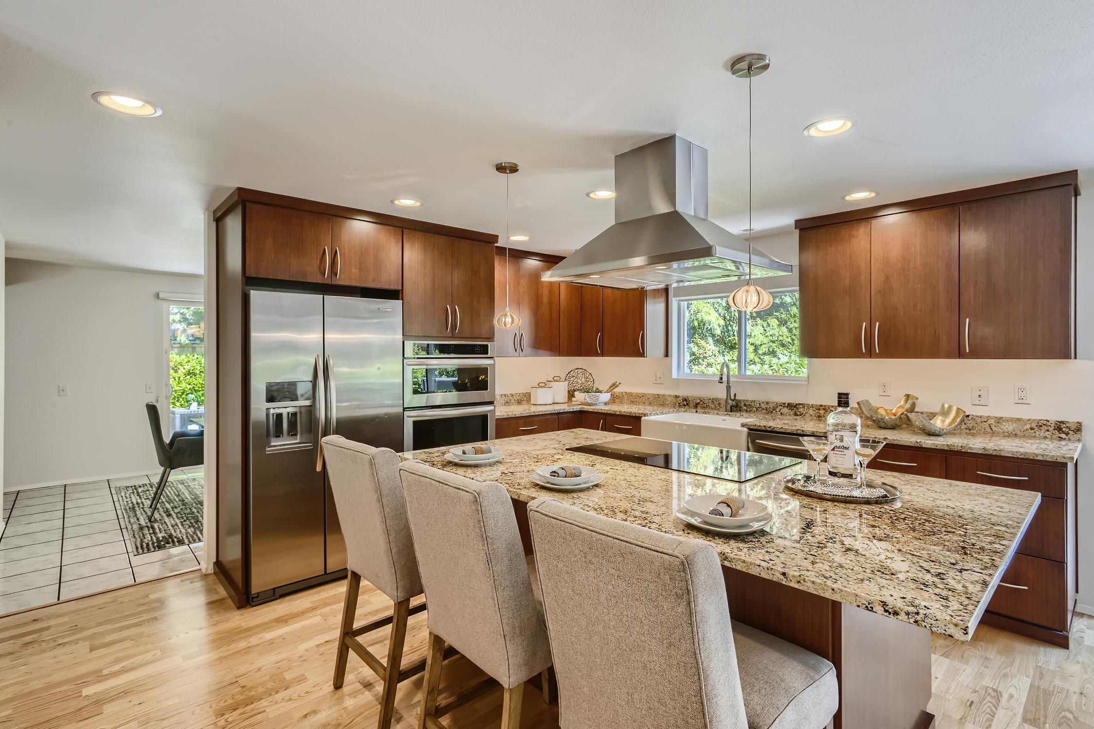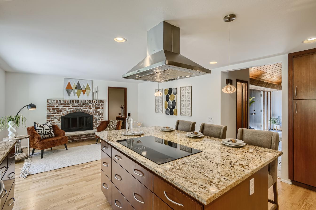 Well-maintained mid-century modern home in Cherry Crest features 4 spacious bedrooms plus den/office and 2.5 baths. Living room with vaulted cedar wood ceiling, wood-burning fireplace with floor-to-ceiling stone and expansive windows overlooking the private back yard. Formal dining room with access to a large deck. Updated kitchen with custom cabinets, slab-granite counters and stainless-steel appliance package, including built-in wall ovens and a 5-burner cooktop. Family room off kitchen has a fireplace and access to a second deck. Primary bedroom with a 3/4 bath, dressing room with double closets and a make-up vanity. Newly-refinished hardwood floors, fresh interior and exterior paint. Great location just minutes to Cherry Crest Elementary, Bridle Trails State Park, Kirkland and downtown Bellevue shopping, restaurants, museums and parks. Easy access to 520/405, Microsoft and other major employers, and future Spring District Light Rail.