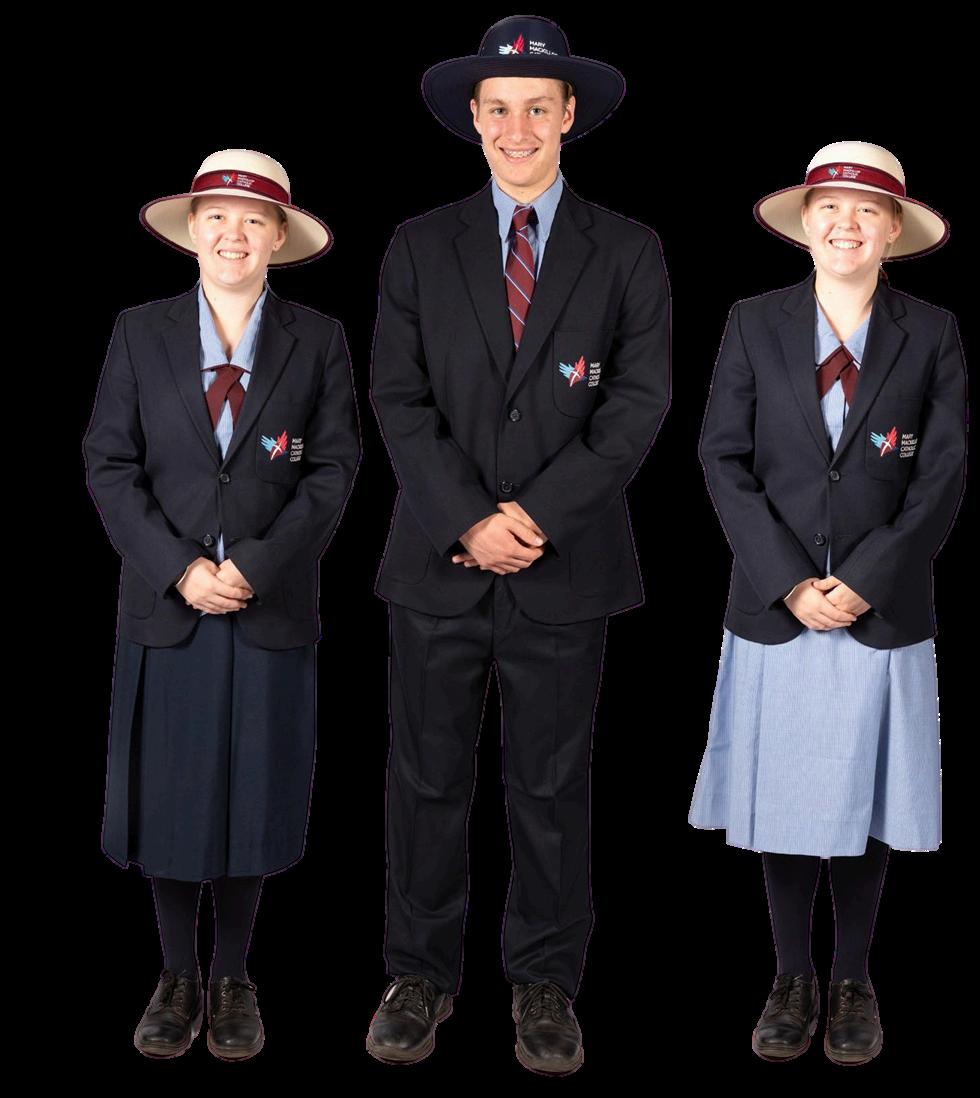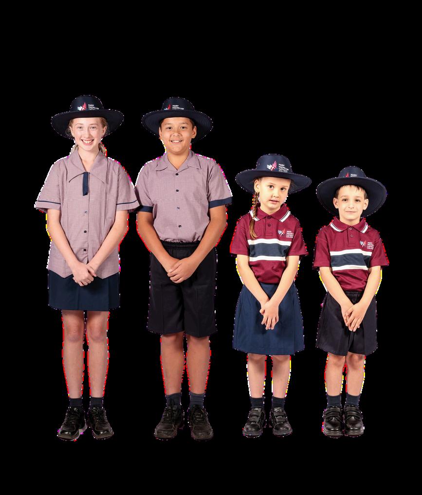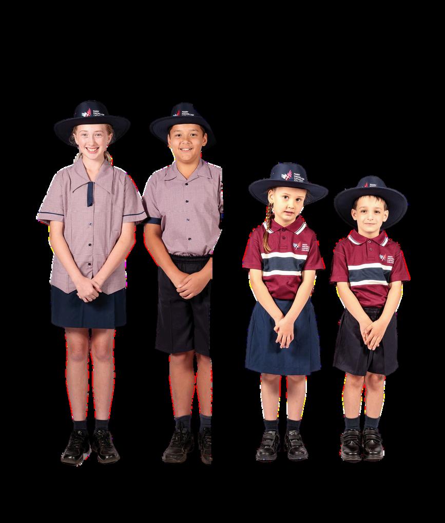 Formal hats are to be worn with the formal uniform. The formal hat or bucket hat can be worn with sports uniform and for sports events. Hats are to be always worn when a student is outside, before school, break times and transitioning between classes