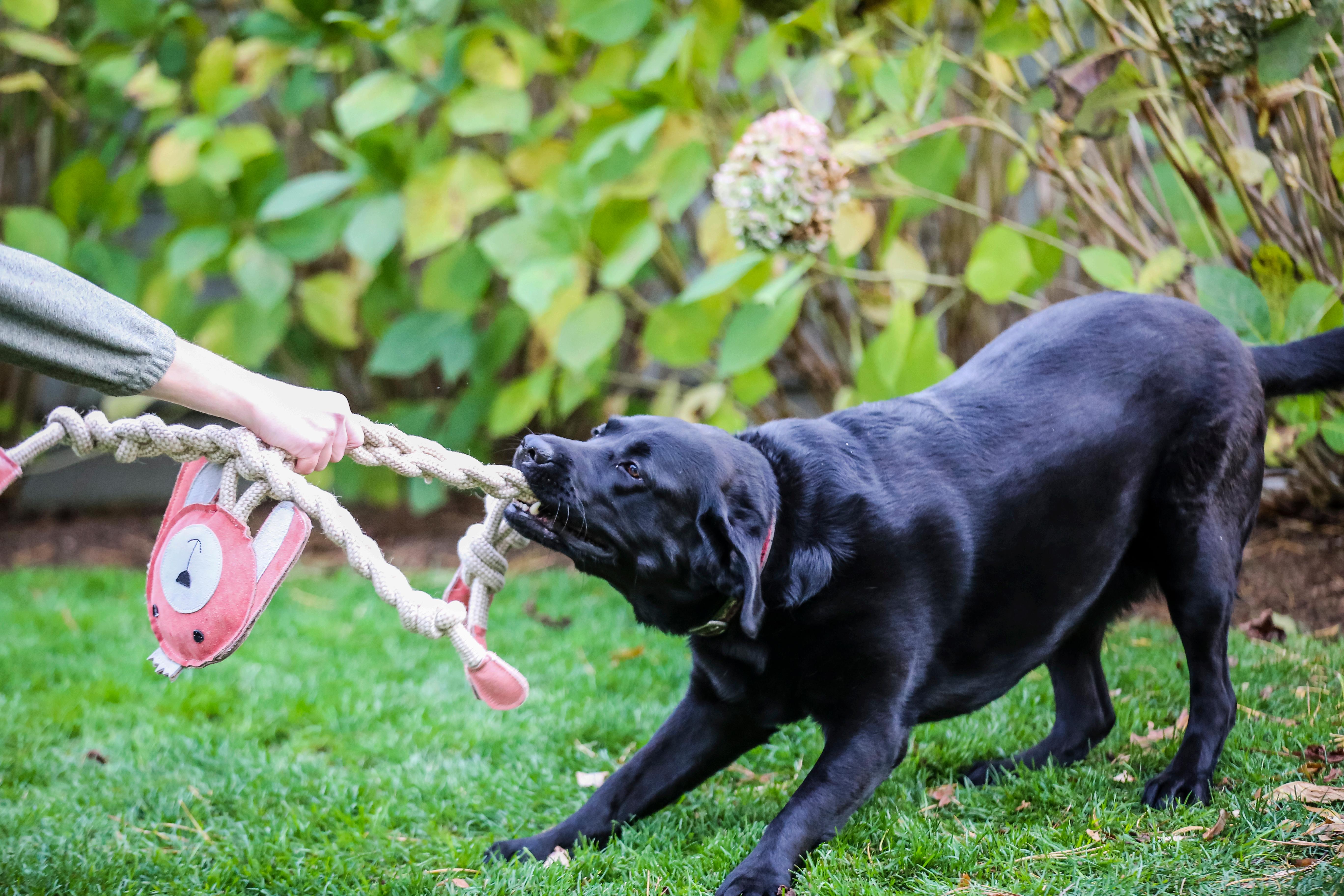 Feel free to tug away with our generously-sized rope Knotties® toys - large measures approximately 17" long, and XL clocks in at a whopping 29" long. That’s a tug-of-war to end all tugs. Huggle-Hide® Bones are a great rawhide substitute.