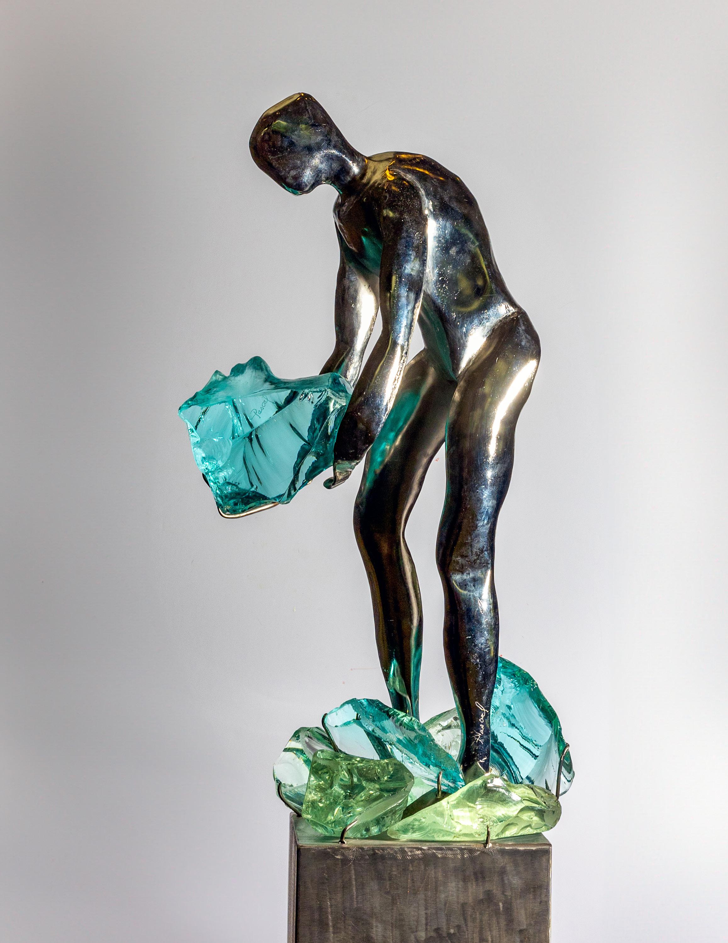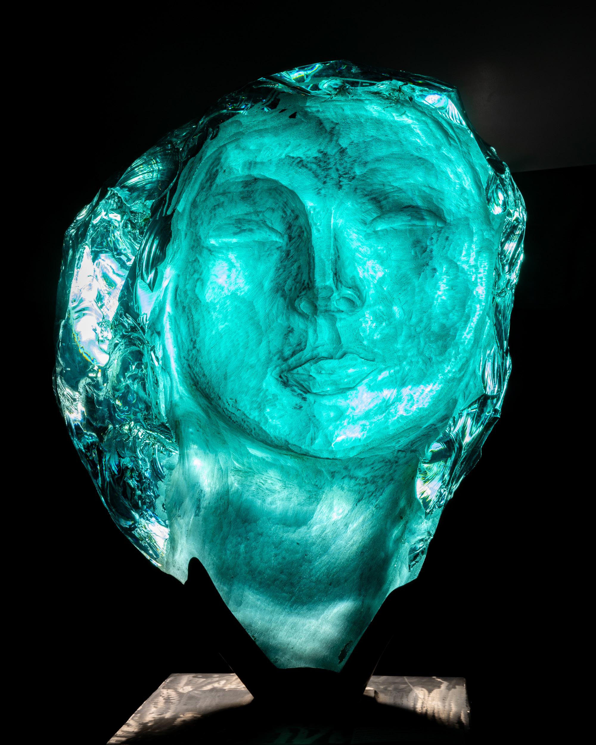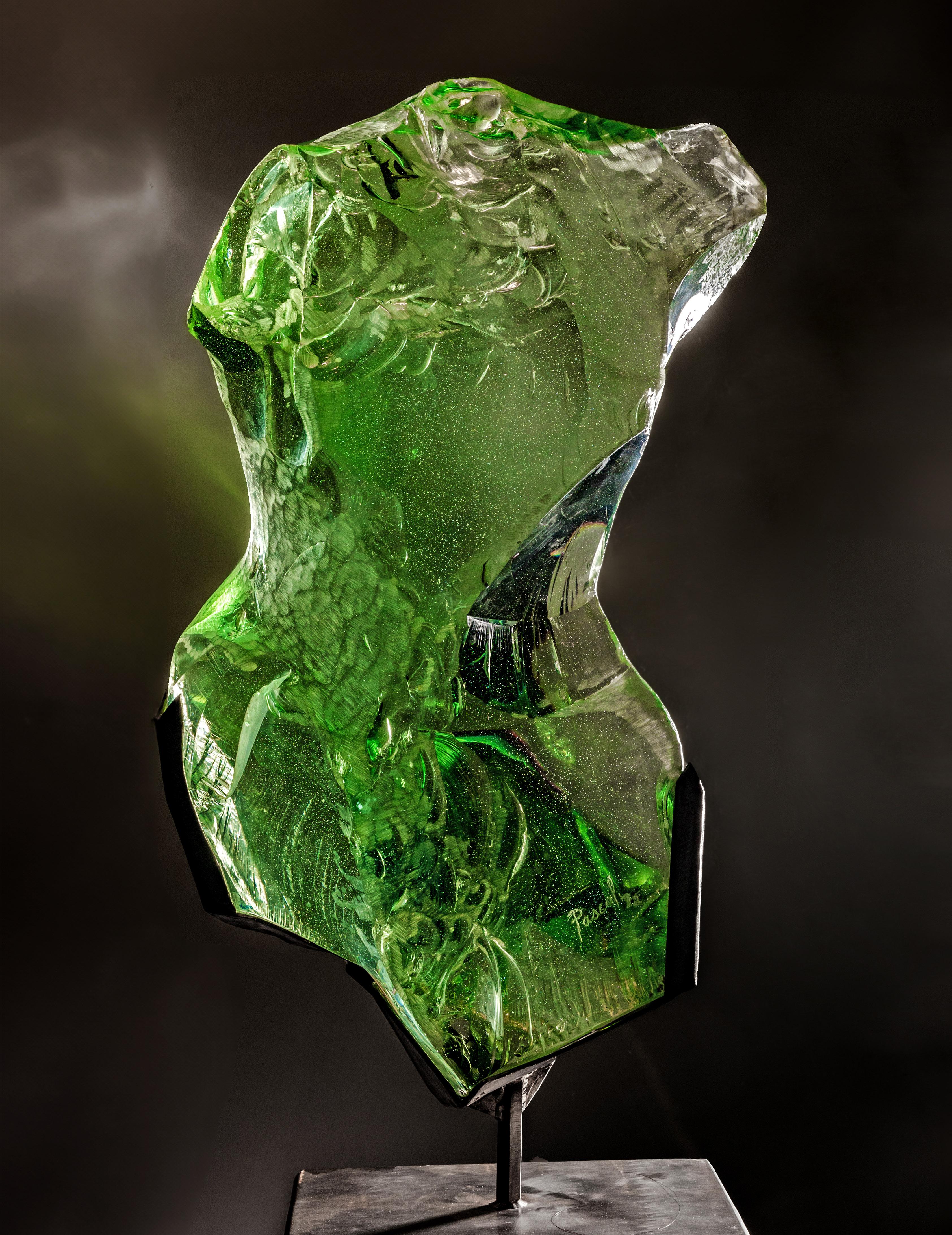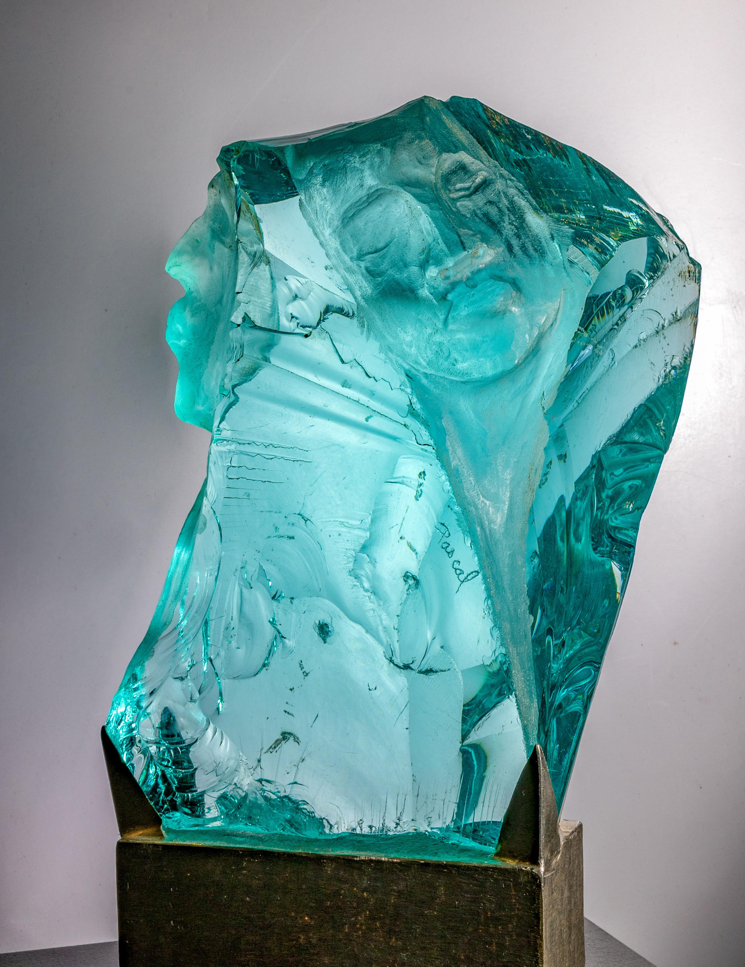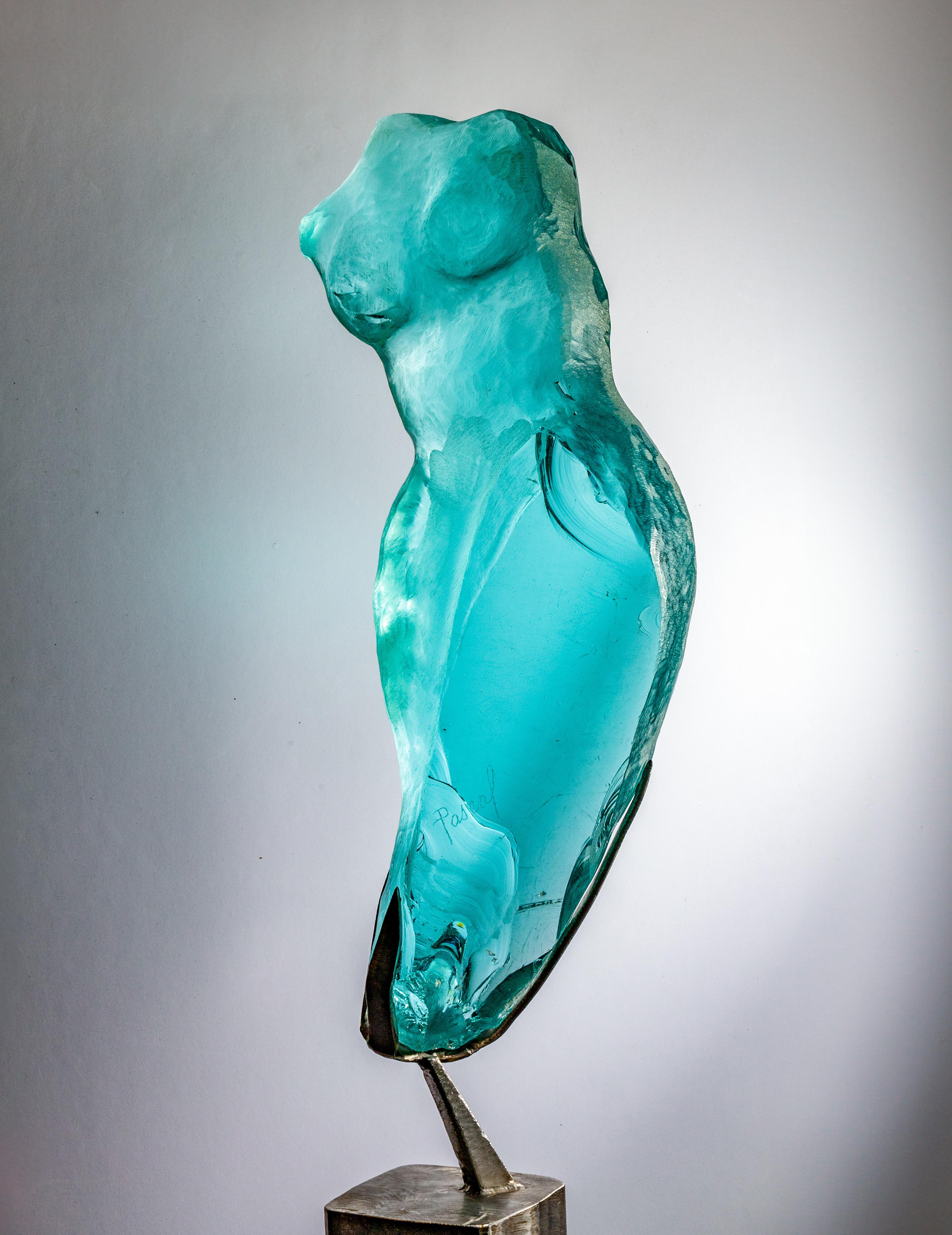 Pascal invented her own tools and technique with which to work with the glass, a medium known for its difficulty and danger. Pascal has carved the largest single piece of glass, which stands 7 feet tall and weighs 2 1/2 tons, “Seated Torso,” the Tour de Force of her life, to delicate crystal rings bedecked with jewels, architectural stainless-steel masterpieces standing 47 feet tall and oil paintings rich with vibrant color and life. Pascal has successfully mastered three art mediums and in the process has garnered notoriety and recognition most artists are not privileged to witness and enjoy in their lifetime.