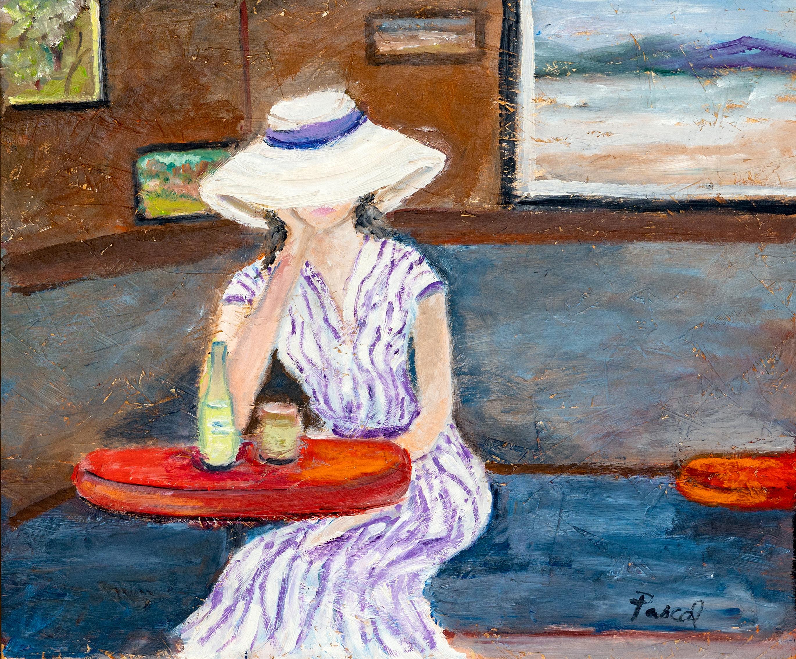 CHEZ CATHERINE Oil on board. 18” x 21 ½” in Barbizon frame.