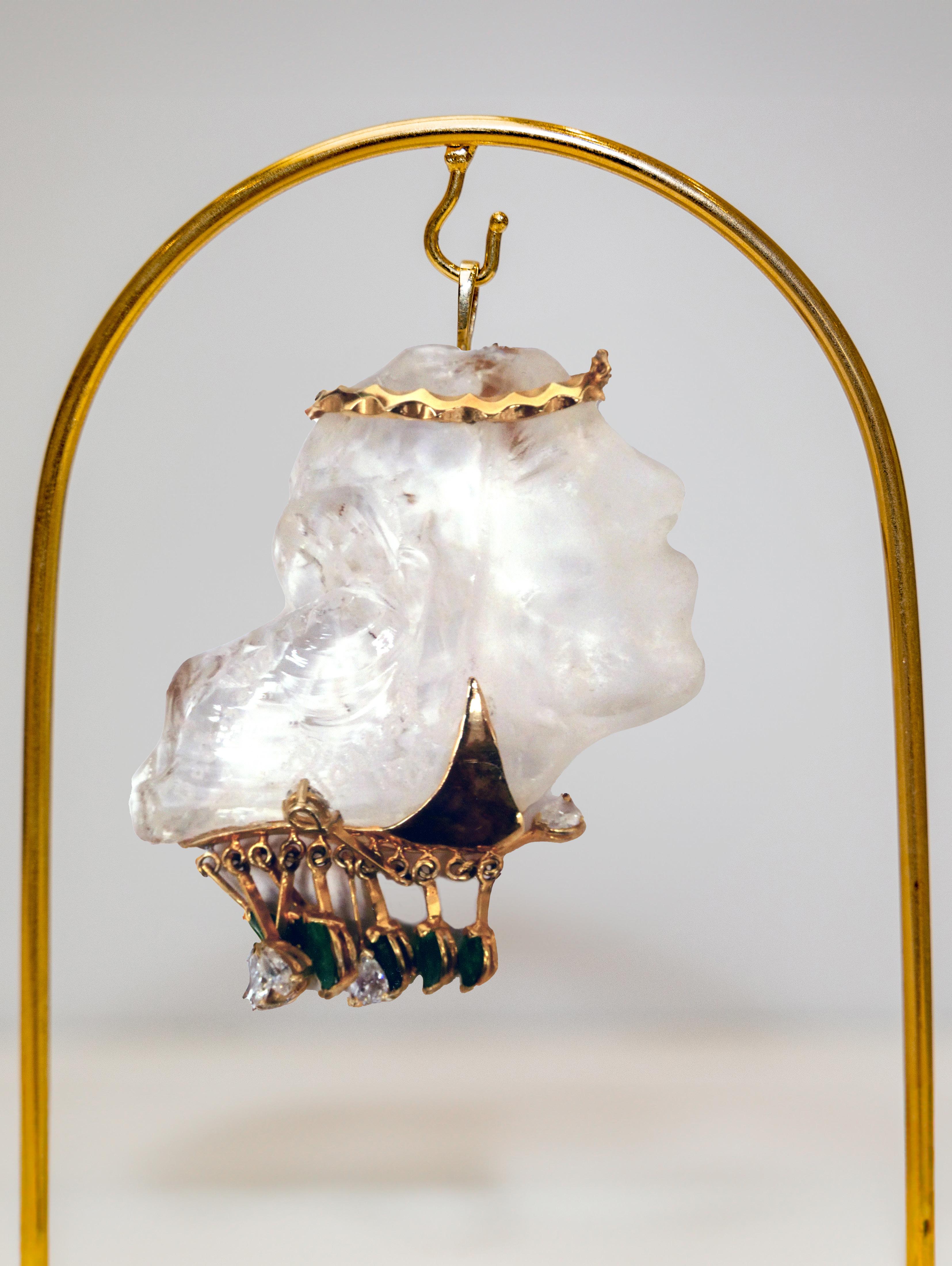 Artist’s Proof. Clear crystal mounted with 14k gold, cubic zirconia, and simulated colored gemstones.