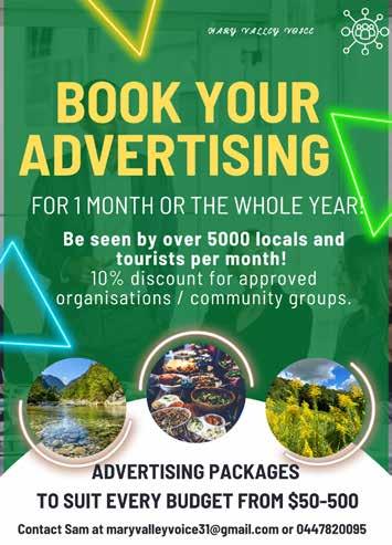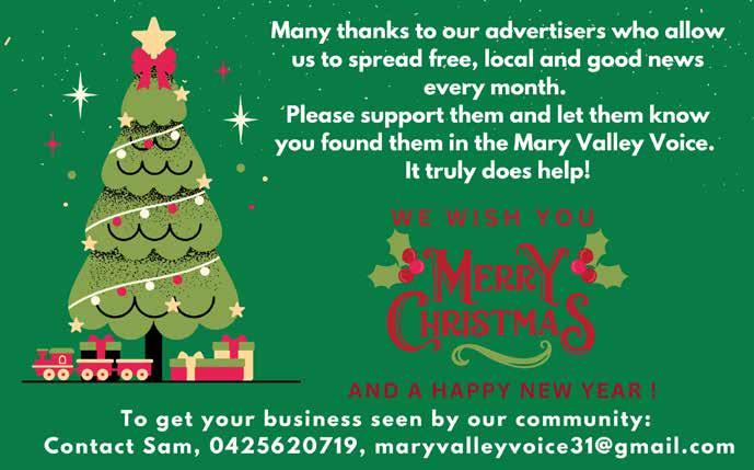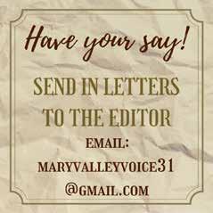 You can send in your community news, stories and advertising enquiries to our editor Sam at: maryvalleyvoice31@gmail.com ~ Cheers Barbara Smith - President MVV