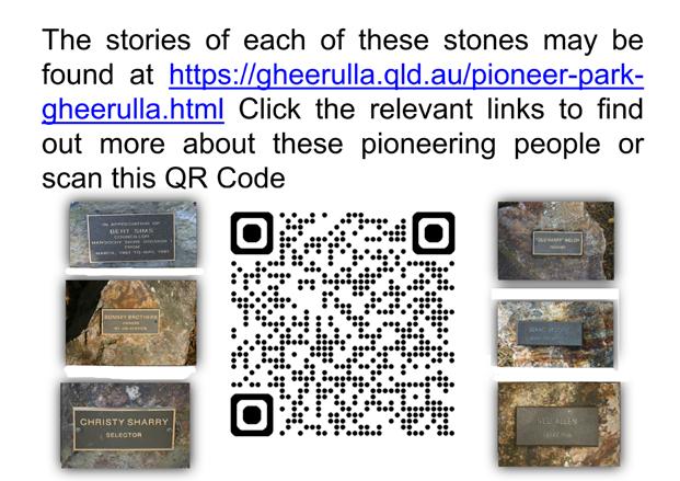 The Kenilworth Museum is endeavouring to have the published photograph erected as a sign in Pioneer Park. The gheerulla.qld.au website has the stories of the stones and the QR code or the website will enable visitors to read those small biographies. They were an interesting mob our forebears.
