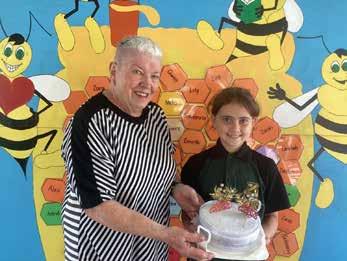 Rose Braun was our child winner, receiving her prize of an iced Christmas Cake. Big thanks to Rose's mother Kate and the teachers at KSCC for allowing and enabling the presentation at the school with our wondeful treasurer (and cake chef!) Lenore Meldrum in front of the colourful busy bee mural. uuuu