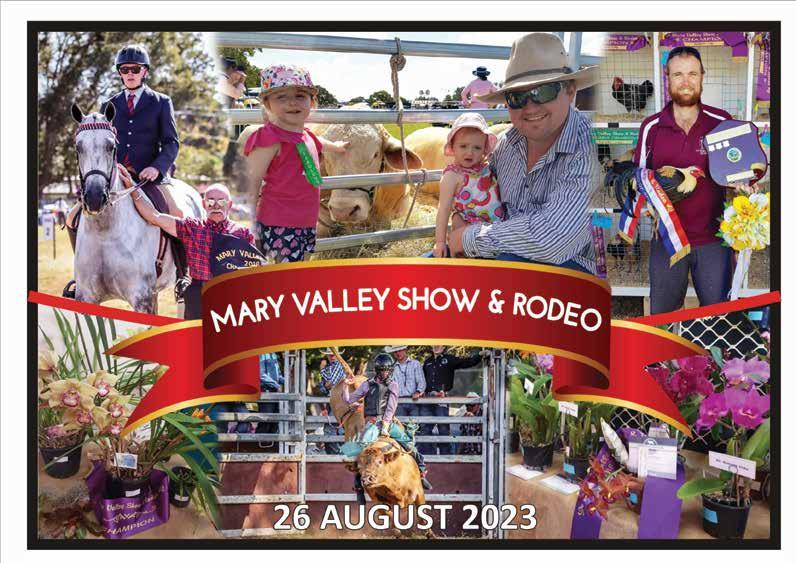 free, Family $45 (2 adults, 2 children). For show schedules and more information, visit our website - www.maryvalleyshow. com.au – we encourage our readers to enter one of our many sections. Telephone: 0427 167329 for more information. Follow our FB posts and please share. See you at this great one day country show!