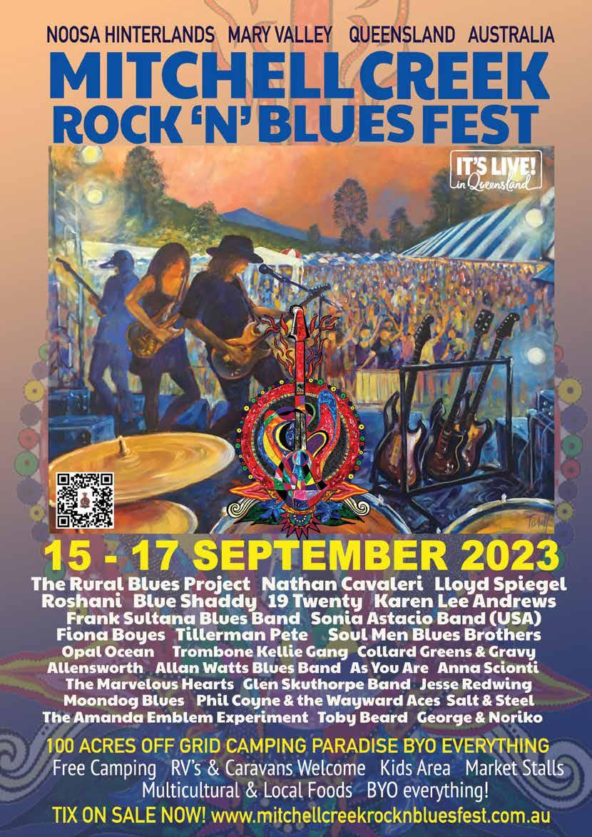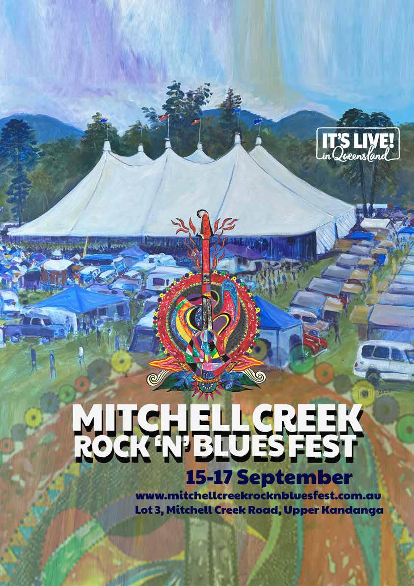 Mitchell Creek Rock N Blues Fest invites patrons to join its family within, on the ultimate hinterland camping escape, revelling in foodie delights and world class live music up close and personal as the spirit of the place works its relaxing and revitalising magic. So does it deliver on its promise? If the jubilant faces on patrons and artists alike are anything to go by each year, then a resounding “yes” echoes through the 90 acre private bushland property! Nestled in the picturesque Sunshine Coast hinterland just two hours north of Brisbane and 45 minutes west of Noosa, the event turns on an amazing 4-night/3-day show.