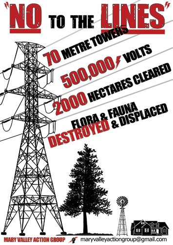 The Mary Valley has once again been asked to bear the brunt of infrastructure to service growing needs elsewhere in Queensland. Thirteen years after fending off Peter Beattie’s Traveston Dam plan, the Valley is now in Powerlink’s sights for high voltage powerlines to connect a proposed hydro-electricity plant at Borumba dam with the Tarong or Halys substations, near the Bunya mountains, and the Woolooga substation, north of Gympie.