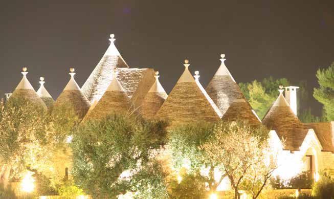 sull’erba appena tagliata e addormentate vi guardando le nuvole danzare lente su di voi. Rilassatevi nell’hammam o perdetevi guardando le morbide linee dell’orizzonte, e gustando un cocktail a bordo piscina. Provate la sensazione di addormentarvi in uno dei 33 trulli che compongono il nu cleo centrale di quest’incantevole borgo risalente al 1800.