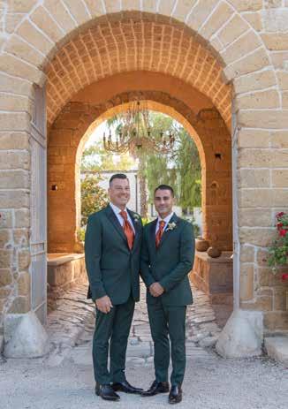 Gianni, come Iparchia, è innamorato della sua regione d’origine. Scozia, Spagna e anni di residenza a Roma non hanno spo stato di un centimetro l’amore viscerale per la sua terra. Così, quando lui e Mario hanno deciso di dirsi di sì, non ha avuto dubbi. Le loro nozze dovevano essere un grosso grasso matrimonio pugliese. Una festa piena di amici. Senza schemi. Certo la scaletta era quella del tipico matrimonio pugliese, con una sequenza interminabile di portate e la pizzica per gradire, ma ognuno degli amici sapeva che il matrimonio di Mario e Gianni sarebbe stata la festa di tutti. Un party fra amici, rilassato e divertente come solo i ri trovi fra gli amici sanno esserlo. In un luogo che profumasse di “pugliesità”. La scelta è ricaduta su Masseria Mangia to, una delle masserie pugliesi più antiche. I due sposi si sono innamorati dei trulli, del pavimento sconnesso, dell’allevamento di cavalli murgesi. Poi hanno buttato giù la lista degli invitati. Considerato il lavoro di Gianni (probabil mente la più importante agenzia di attori d’Italia), e quello di producer di Mario, più che una lista di invitati poteva sembrare l’elenco dei candidati al David di Donatello. Attori e personaggi dello spettacolo, quan