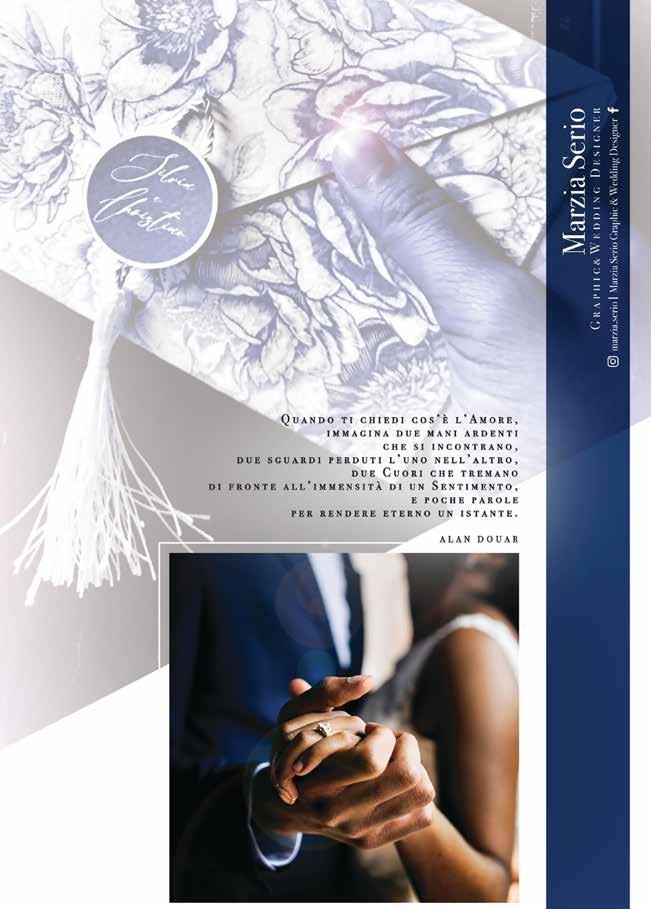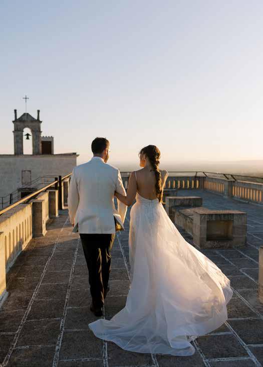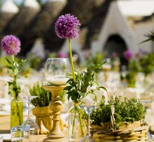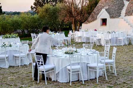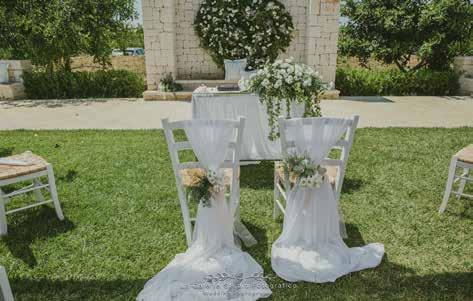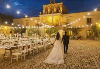 e di grande charme, ha scelto di ritornare nella sua Puglia e promuove il suo territo rio valorizzando masserie, ville di campa gna, borghi di trulli e spiagge. Con la collaborazione di operatori pro fessionisti del wedding aiuta gli sposi a scegliere tutti i servizi che riguarderanno l’organizzazione delle nozze: dalla pianifi cazione del budget, alla definizione della time line, dal design del matrimonio alla scelta dei fornitori. Ma questo lo fanno tutti.