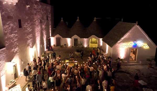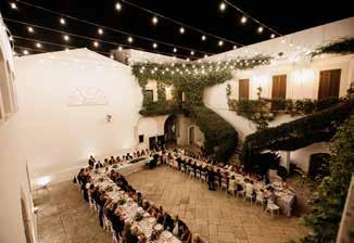 ne e viverla come esperienza, come sco perta. Non è un pacchetto viaggi, non è una vacanza preconfezionata. Quello che i turisti, anzi i viaggiatori chiedono a Momò è la costruzione di itinerari personalizzati o escursioni mirate. Percorsi che spesso prevedono un soggiorno esperienziale nei trulli o nelle masserie. Ma non finisce qui. Chi arriva in questa terra spesso la sceglie come meta elettiva per le proprie nozze e si affida ad Angelica e Giambattista per l’organizzazione e realizzazione di eventi, per la costruzione di momenti speciali as solutamente unici e personalizzati. Feste di nozze che diventano una festa fra ami ci, caratterizzata dall’idea di stare insieme e condividere gioia ed emozioni. Giam battista e Angelica mettono a disposizio ne delle coppie tutta la loro professionalità e la loro competenza. Si occupano per sonalmente del coordinamento dell’even to (forti anche della padronanza di lingue straniere come inglese e tedesco), dalla preparazione ai primi contatti fino al termi ne della permanenza degli sposi e dei loro ospiti. Curano loro ogni dettaglio e perso nalizzano servizi e modalità dell’evento in base ai desideri e alle esigenze dei loro ospiti. E trasformano ogni momento di vita nella nostra regione in attimi di scoperta, di meraviglia e di gioia. antoniomarzano