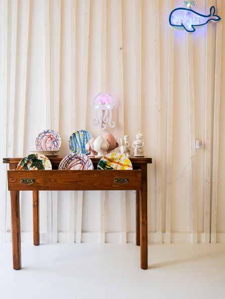 A Monopoli, a pochi passi da quello che i locali chiamano Il Borgo, da qualche gior no c’è un piccolo ufficio a piano terra. Lo noti perché l’insegna è fatta da lumina rie, bianche e gialle con la scritta Momò Apulia. Questo è l’ufficio organizzativo di Momò Apulia, arredato con luminarie di segnate da Angelica Pascale e “pezzi di viaggio” di Giambattista Comes. In ufficio fanno bella mostra anche pezzi esclusivi dei maestri dell’artigianato pugliese come le ceramiche artistiche del laboratorio di Giuseppe Fasano di Grottaglie. Ti avvicini e sui tavoli dell’enoteca vicina, dal nome evocatIvo Veritas, vedi le due te ste ricce di Angelica e Giambattista. “Vieni