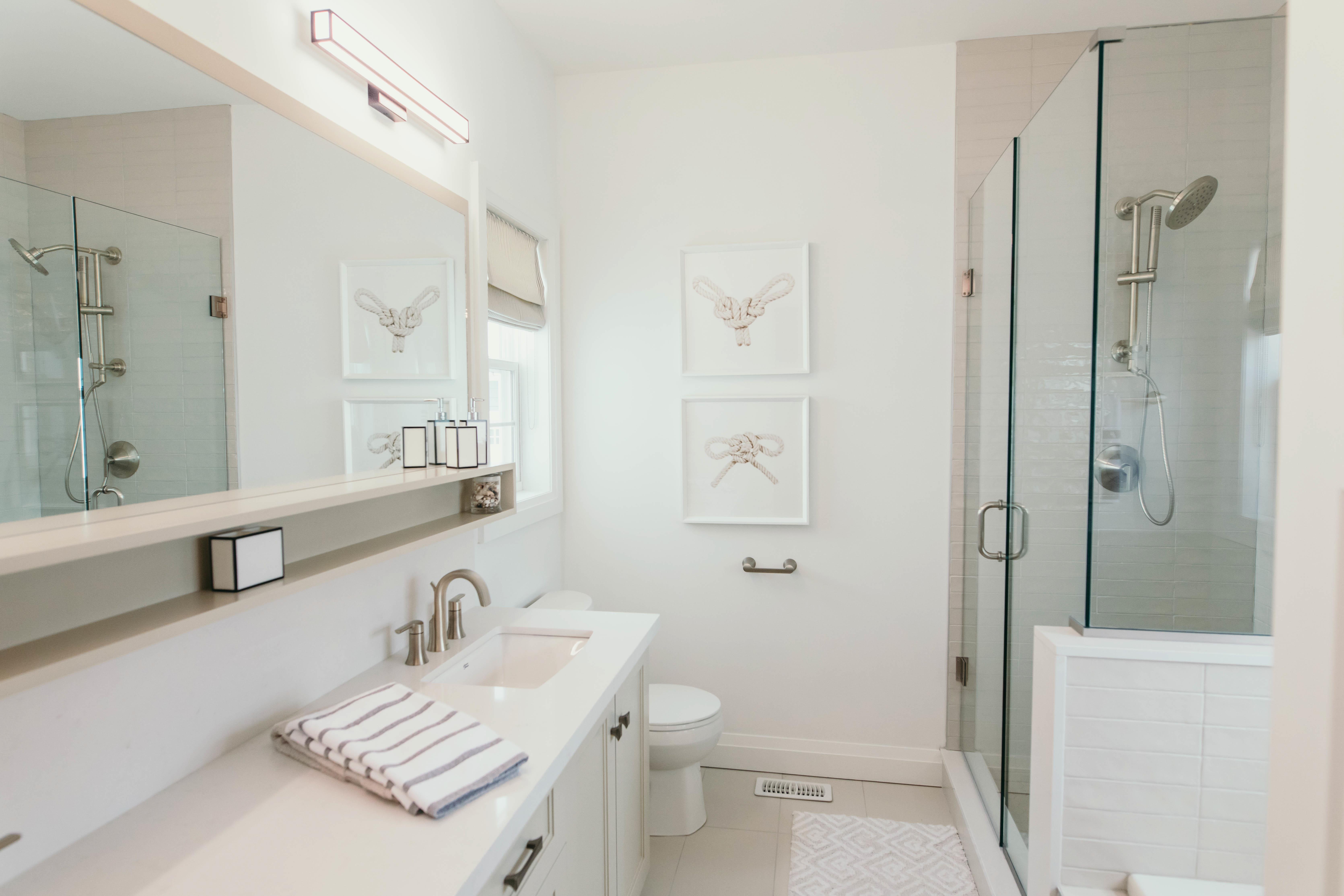 1. Fixed tub shield for Main bathtub Clear glass. In lieu of shower curtain rod