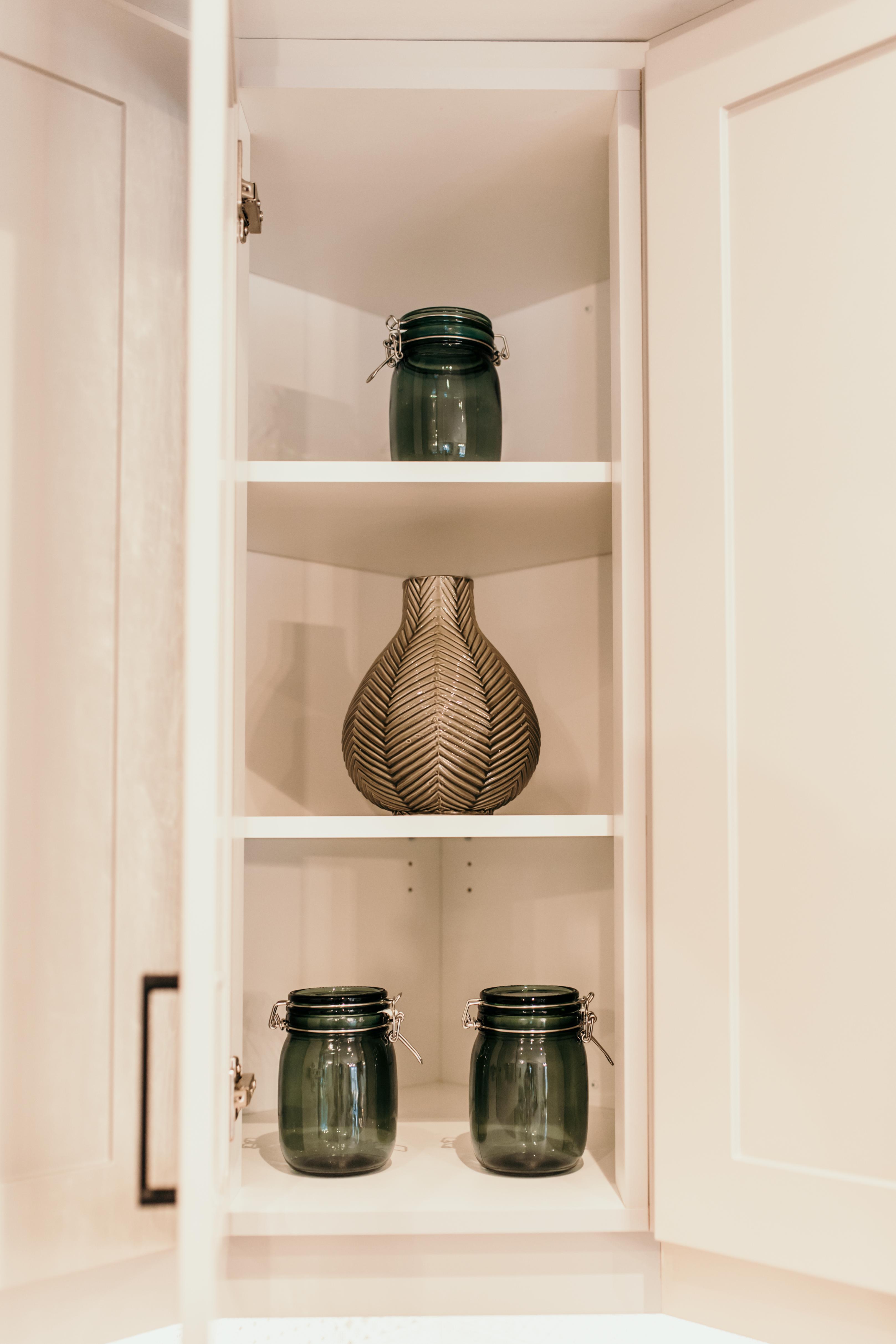 Undermount stainless, granite, farmhouse 1. Upper angled corner cabinet 7. Pots & pans drawers 16. Pull out drawer behind cabinet door 8. Profiled drawer fronts