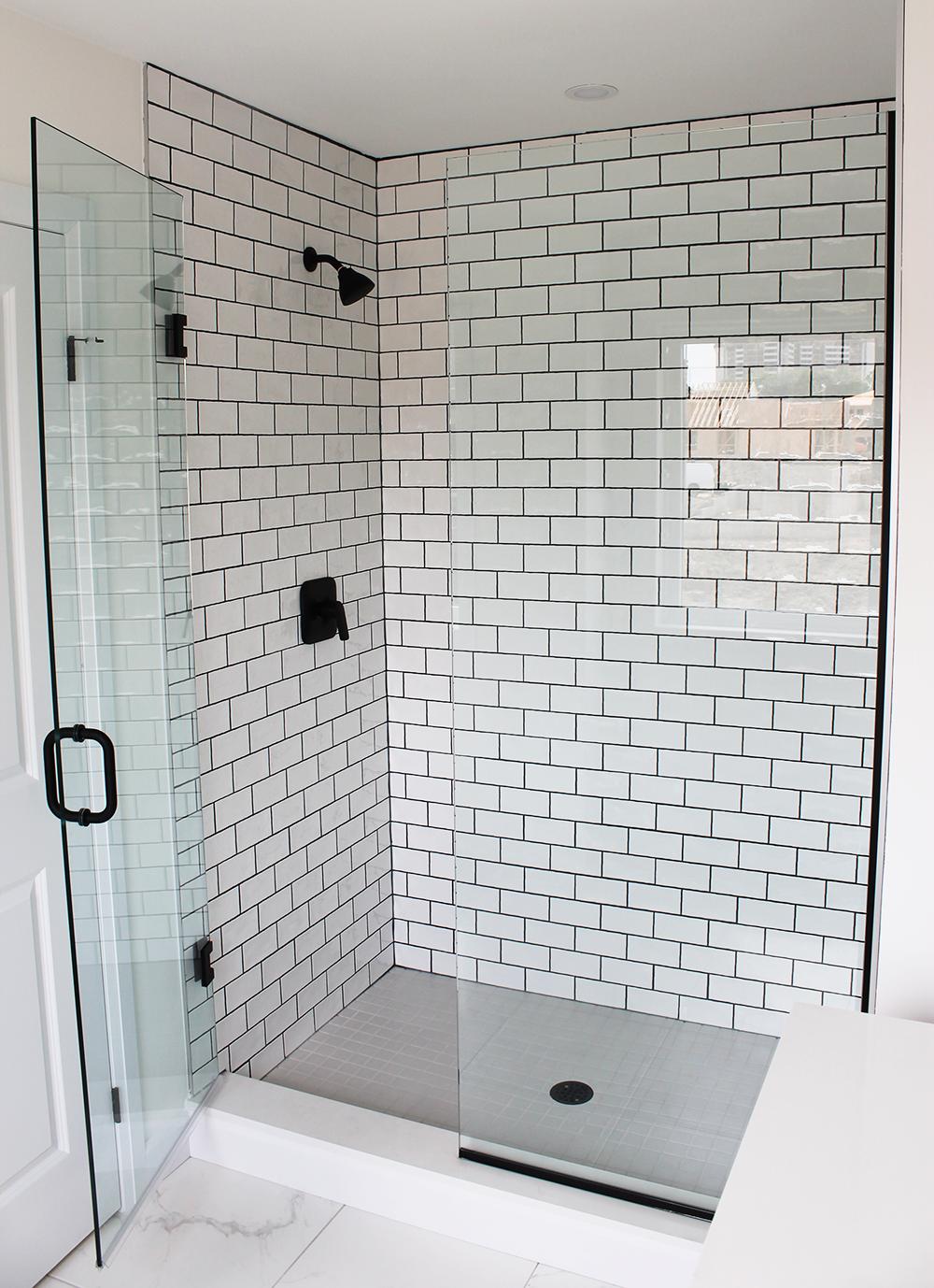 Full glass on 1 side, ceramic walls and base. Includes upgraded Schluter base membrane and 10mm custom glass (replaces acrylic base with roll top glass).