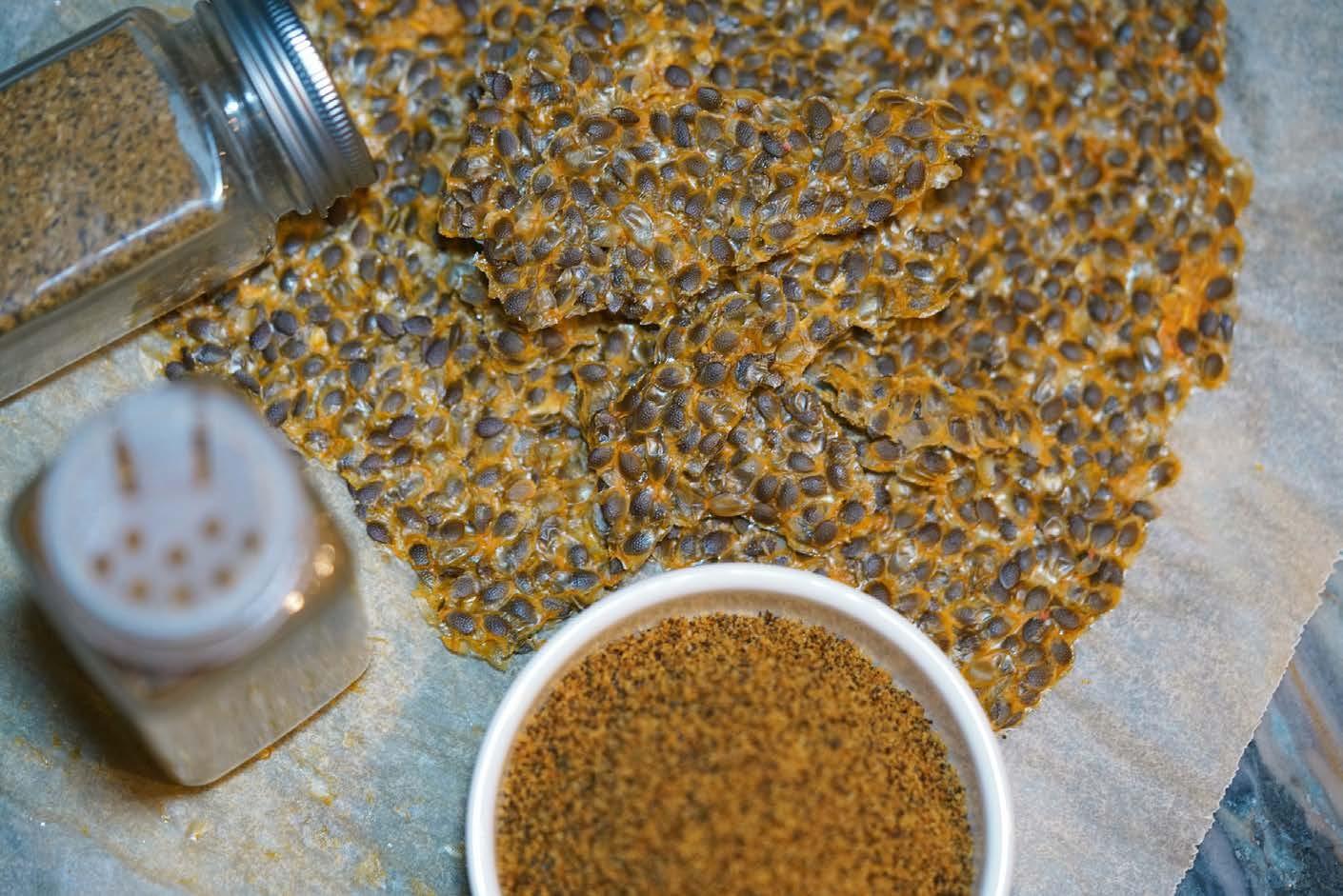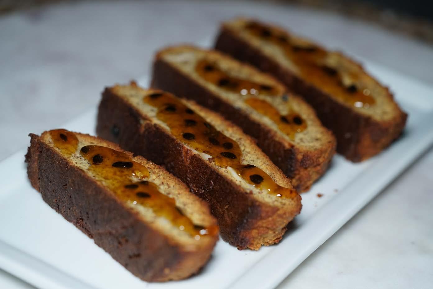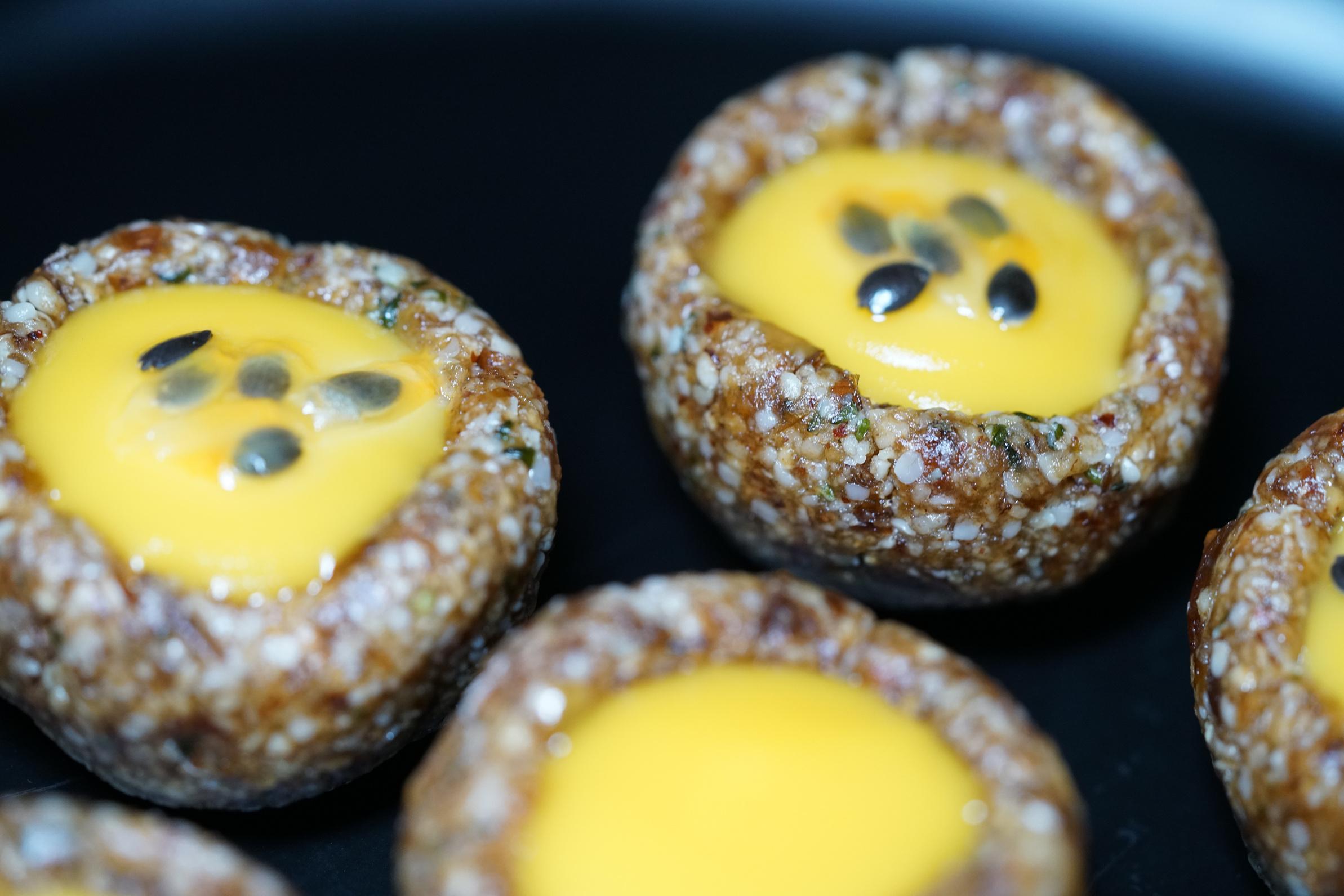 A quick passion fruit jam can be made with raw honey and passion fruit pulp and used as a delicious and beautiful garnish.