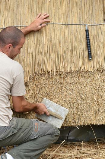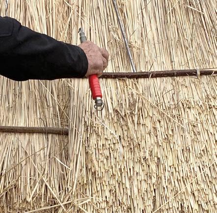 Tudi slabe lastnosti kritja s slamo jim moraš vnaprej povedati. Obstaja več kritin. Madžari delajo po svoje in s trstiko. Mi smo pa eni izmed redkih v Sloveniji, ki delamo s slamo in jo tudi pridelamo. Povedati je treba, da mora biti slama očiščena, brez zrnja in s pravim naklonom. Z nakloni so največji problemi, včasih arhitekt ne zna drugače narisati kot 32-odstotni naklon. (smeh)