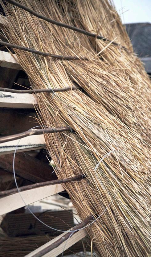 Na tleh sodobnega skednja, v katerem je dišalo po sveže obloženih kozolcih, se je razprostirala zlata preproga neenakomerno prepletenih niti, ki so čakale, da jih nežne roke počešejo in počistijo, razvrstijo po velikosti in povežejo v snope, iz katerih bo po treh dneh nastala slamnata streha.