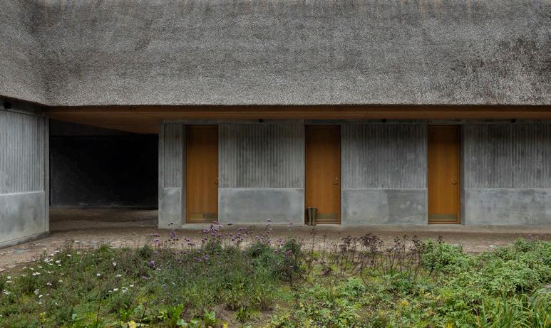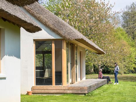 »Hiša je del skupine treh stavb na lokaciji, ki imajo vse tipično lokalno obliko longère (dolga podeželska stavba) in skupno slamnato streho. Slama se že dolgo uporablja za pokrivanje podeželskih streh v okolici, predvsem zaradi nizke cene materiala in toplotne izolacije. Tudi notranja konstrukcija je iz naravnih materialov, in sicer je izdelana iz prefabriciranih križnolepljenih panelov, ki omogočajo viden notranji ovoj.«