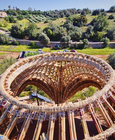 izliva. Podkonstrukcija objekta je zasnovana iz kombinacije recikliranih in prefabriciranih lesenih delov in je začasna ter bo nekoč razstavljena ter ponovno uporabiljena ali reciklirana brez škodljivih učinkov za naravo ali človeka.«