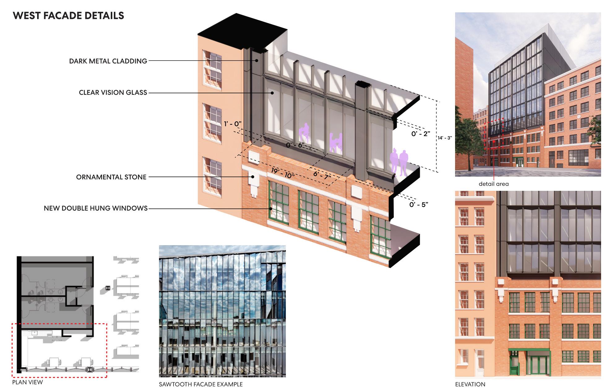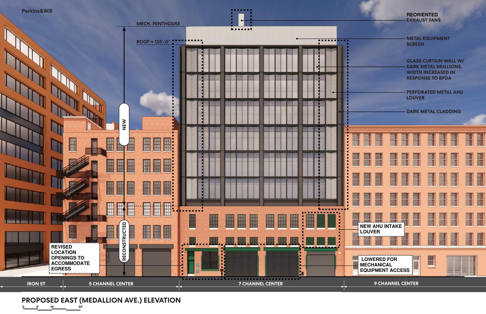 Located in the historic Fort Point Channel District in Boston, the design of 7 Channel Center was subject to review and approval from the historic commission. I contributed towards design iterations and created graphics for presentations nuanced towards aligning with the vision and requirements of the commission. The project went through an enhanced SD phase, with advanced early coordination with MEP consultants in order to work with the tight constraints of the site. 7 Channel Center was programmed for mixed office and lab use, and maintained the existing historic three-story building while adding an additional six levels with a facade that would celebrate the district’s industrial roots. Project recieved approval from the Historic Commission and the Boston Planning Department, but was ultimately paused by the client.