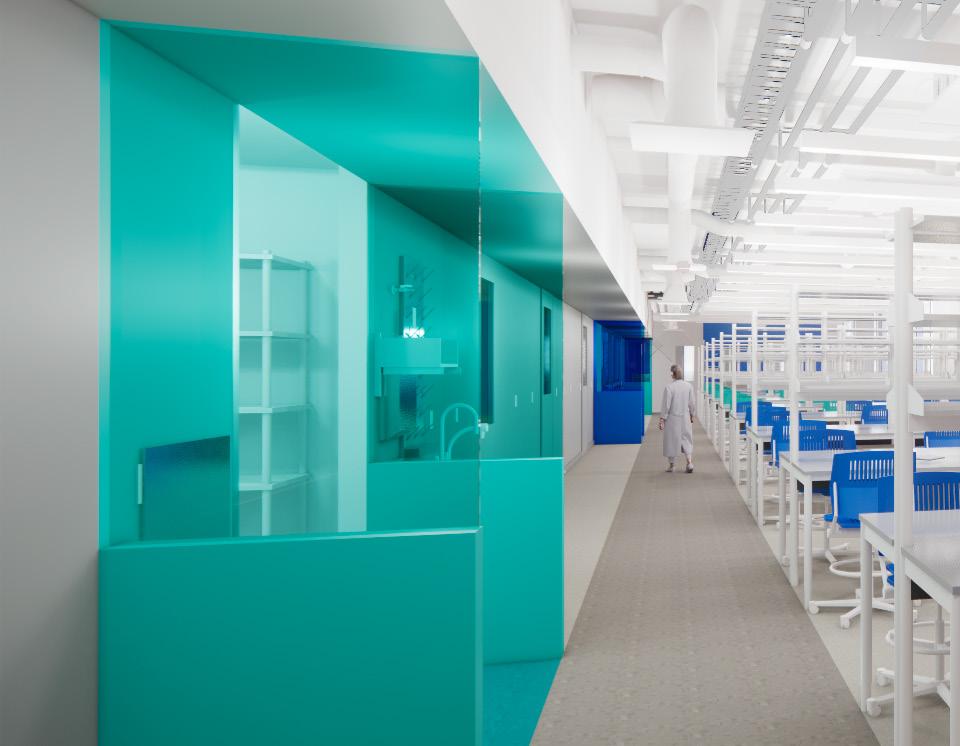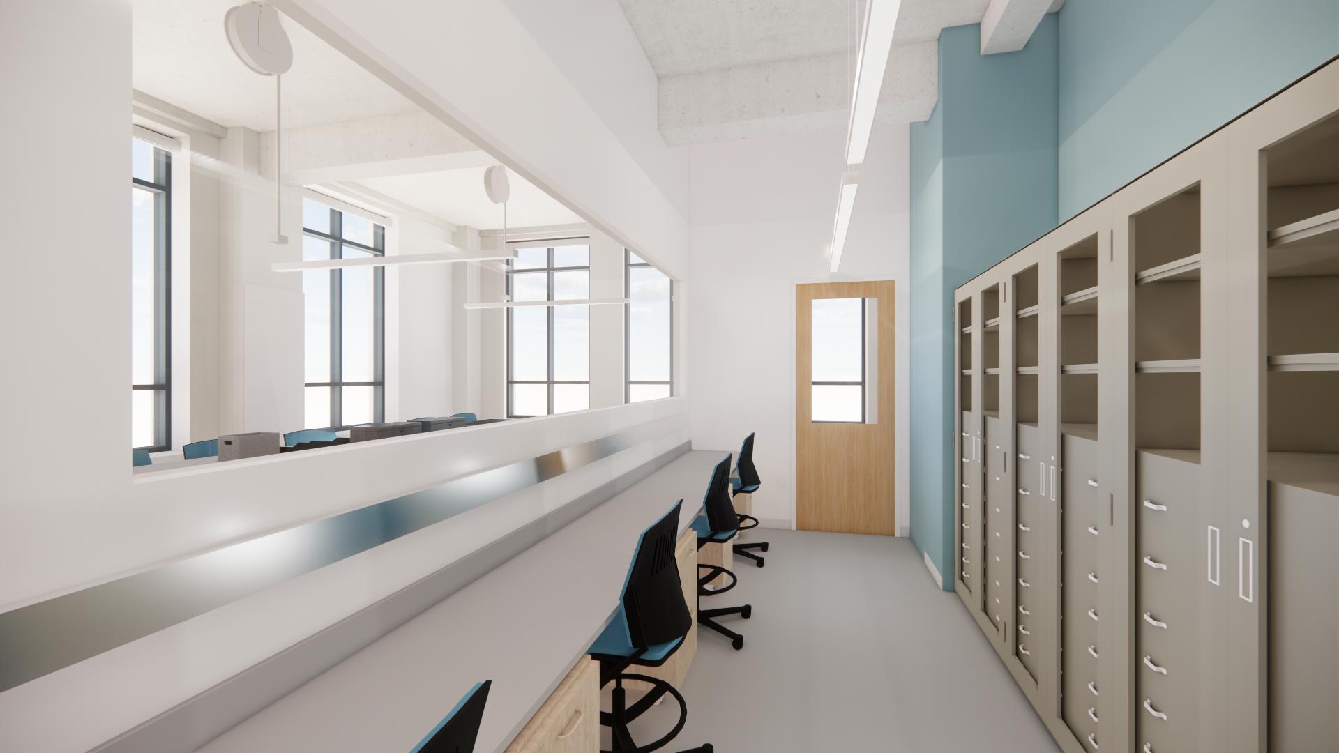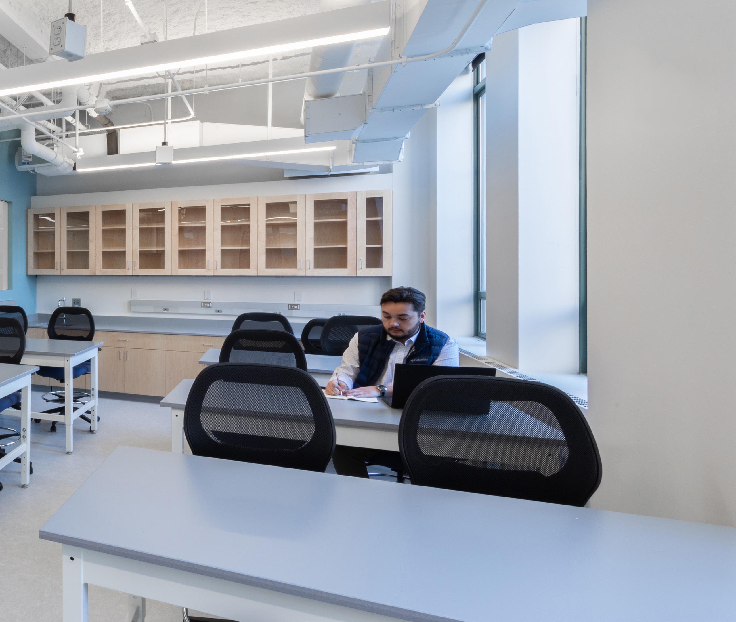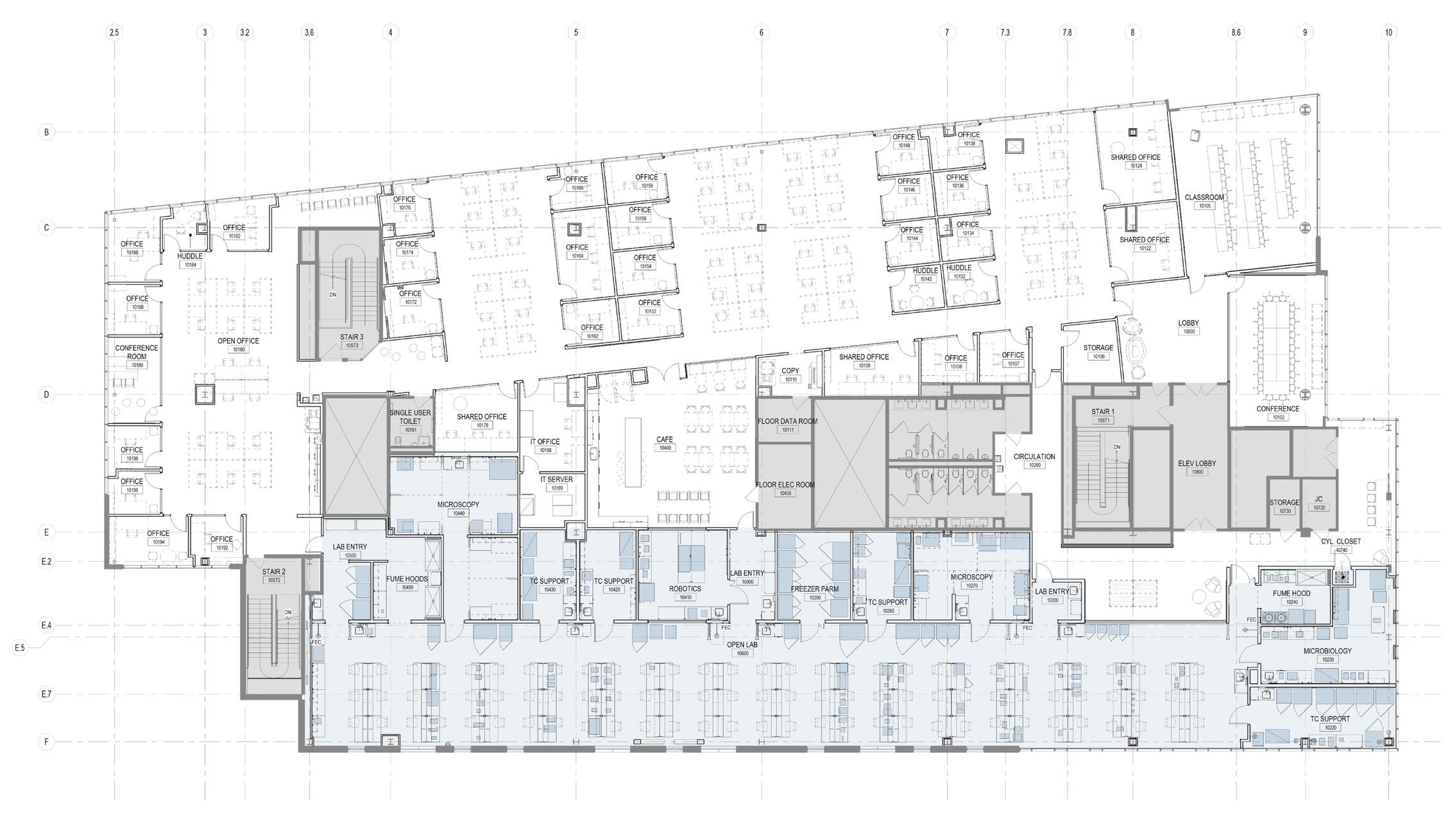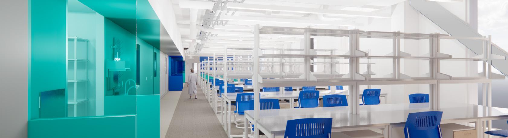Under guidance and review from the PM, PA, Interior Designer, and Managing Principal, one other team member and I were responsible for design iterations, refinement, and documentation during SD and DD, along with creating graphics for client presentations. I was the primary on documenting the lab side during CDs, and am currently managing and coordinating Construction Administration.