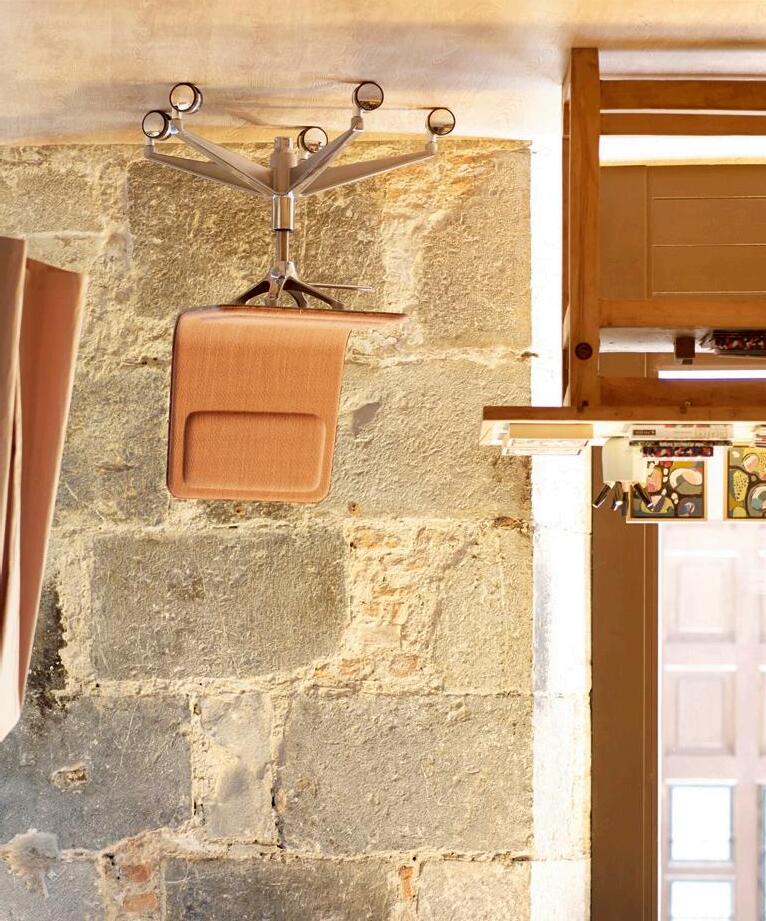 La silla Kuskoa Bi en versión oficina y enteramente tapizada viste este espacio de trabajo donde la madera es la gran protagonista. La base metálica de la silla está disponible en dos versiones, con o sin ruedas.