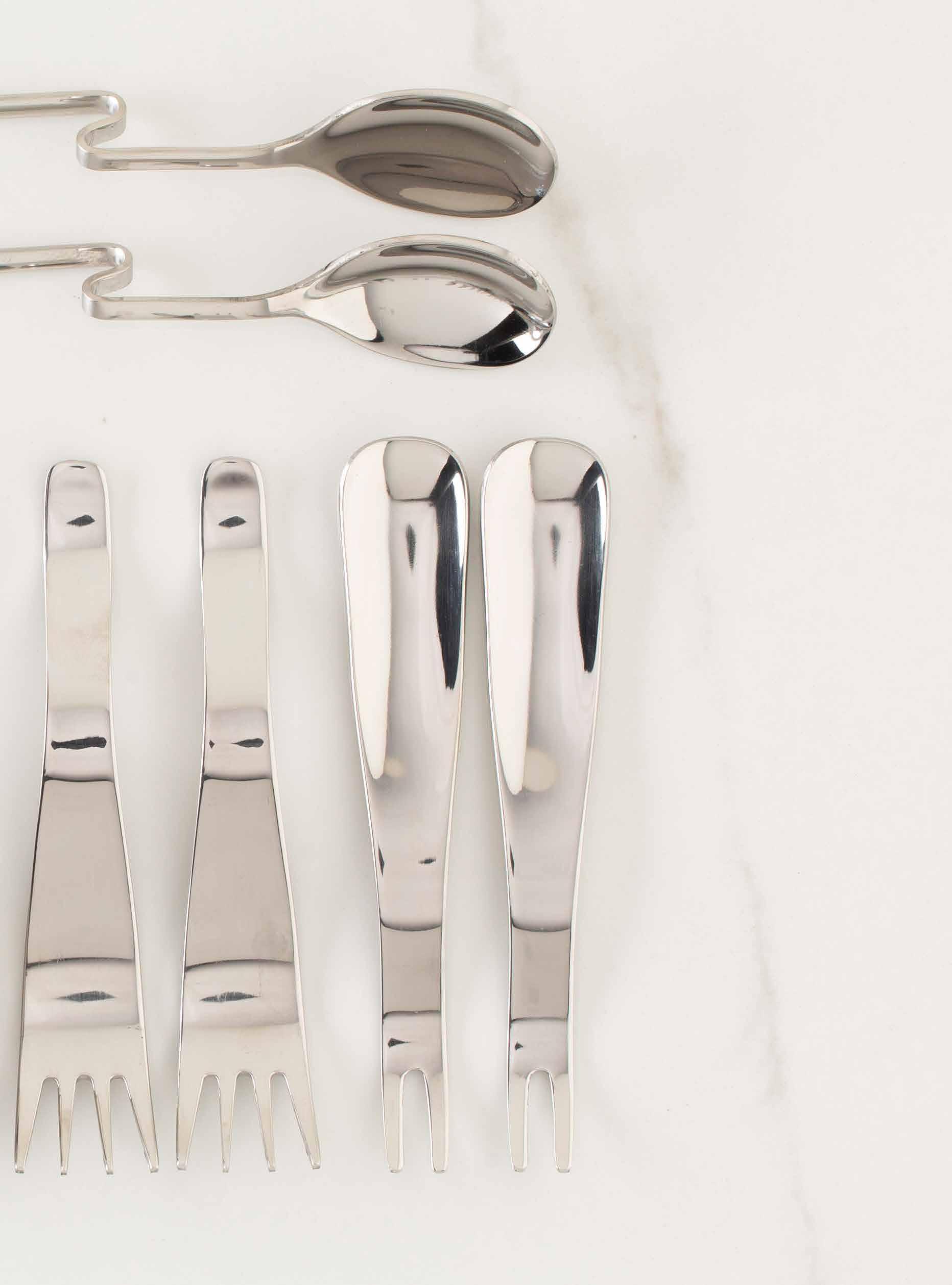 Presentamos nuestra gama de cubiertos fabricados con el acero de más alta calidad AISI 304, material muy superior a otros aceros inoxidables, aleado con cromo, níquel y bajo contenido de carbono. Su composición lo hace totalmente resistente a la corrosión y oxidación, convirtiéndolos en cubiertos atemporales, por su duración y por sus diseños , pensados para todo tipo de ambientes pero siempre con el objetivo de perdurar en el tiempo.