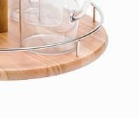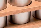 FANTASY INOX-LEGNO espositore | PMMA con fori | 2 caraffe | 4 ciotole | cool 3 inserti in PMMA satinato GN 1/3 con fori / 2 caraffe multiuso / 4 coppette in porcellana bianca Ø cm 14,5