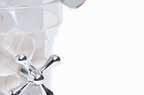FANTASY INOX espositore | 2 bacinelle vetro | 2 coperchi | cool Inserto in PMMA satinato con fori / 2 coperchi con asola montati sull'inserto a snodo / 2 coppe in vetro incluse
