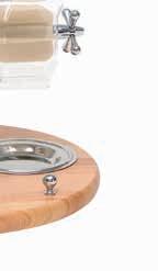 FANTASY INOX-LEGNO espositore | 2 bacinelle vetro | 2 coperchi | cool Inserto in PMMA satinato con fori / 2 coperchi con asola montati sull'inserto a snodo / 2 coppe in vetro incluse