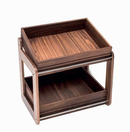 Structure composed by two pieces in mirror polished 18/10 stainless steel or a combination of stainless steel and solid walnut wood / insert in solid walnut wood