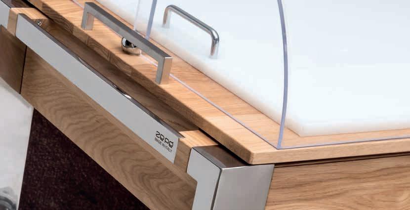 Structure composed by two pieces in mirror polished 18/10 stainless steel or a combination of stainless steel and solid walnut wood / chilled with two GN 1/2 ice packs