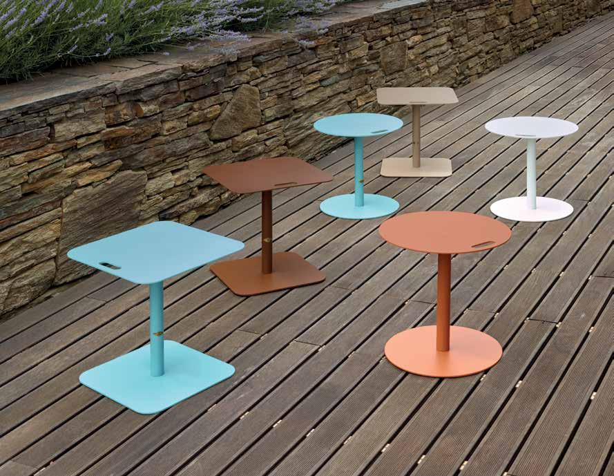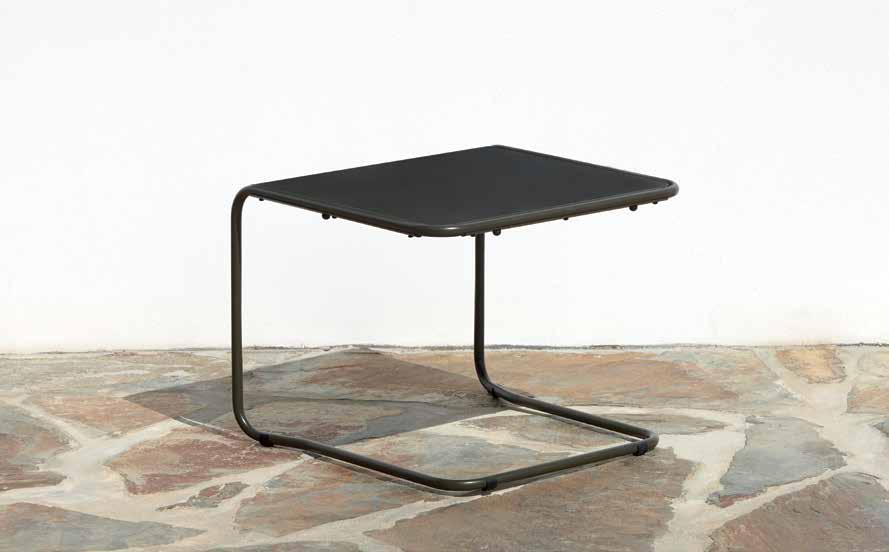 FR — Les systèmes articulés s’étendent naturellement aux tables. Également construit en métal solide et structuré par des rivets métalliques, permettant une combinaison harmonieuse avec les chaises dans l’interaction avec le milieu environnant.