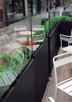 [ES] Decorativo y funcional, el separador jardinera está fabricado en chapa galvanizada antióxido. Disponible en color gris oscuro, viene con opción de cristal recto o sin cristal.