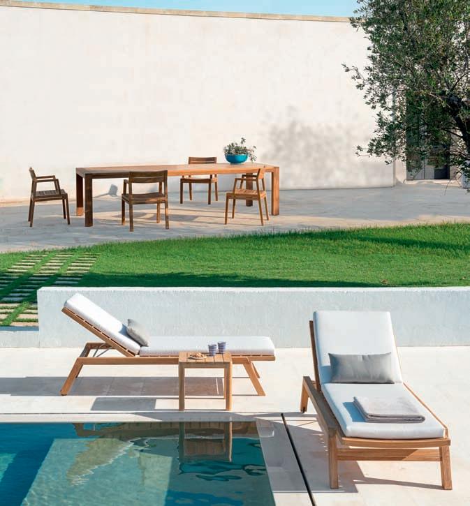 A natural harmony of lines and volumes characterises the Essenza collection, a wide–ranging and versatile solution for furnishing, relaxing and living in the open air. The inserting of brushed steel details in the teak frame creates a distinctive fusion of technology and nature.