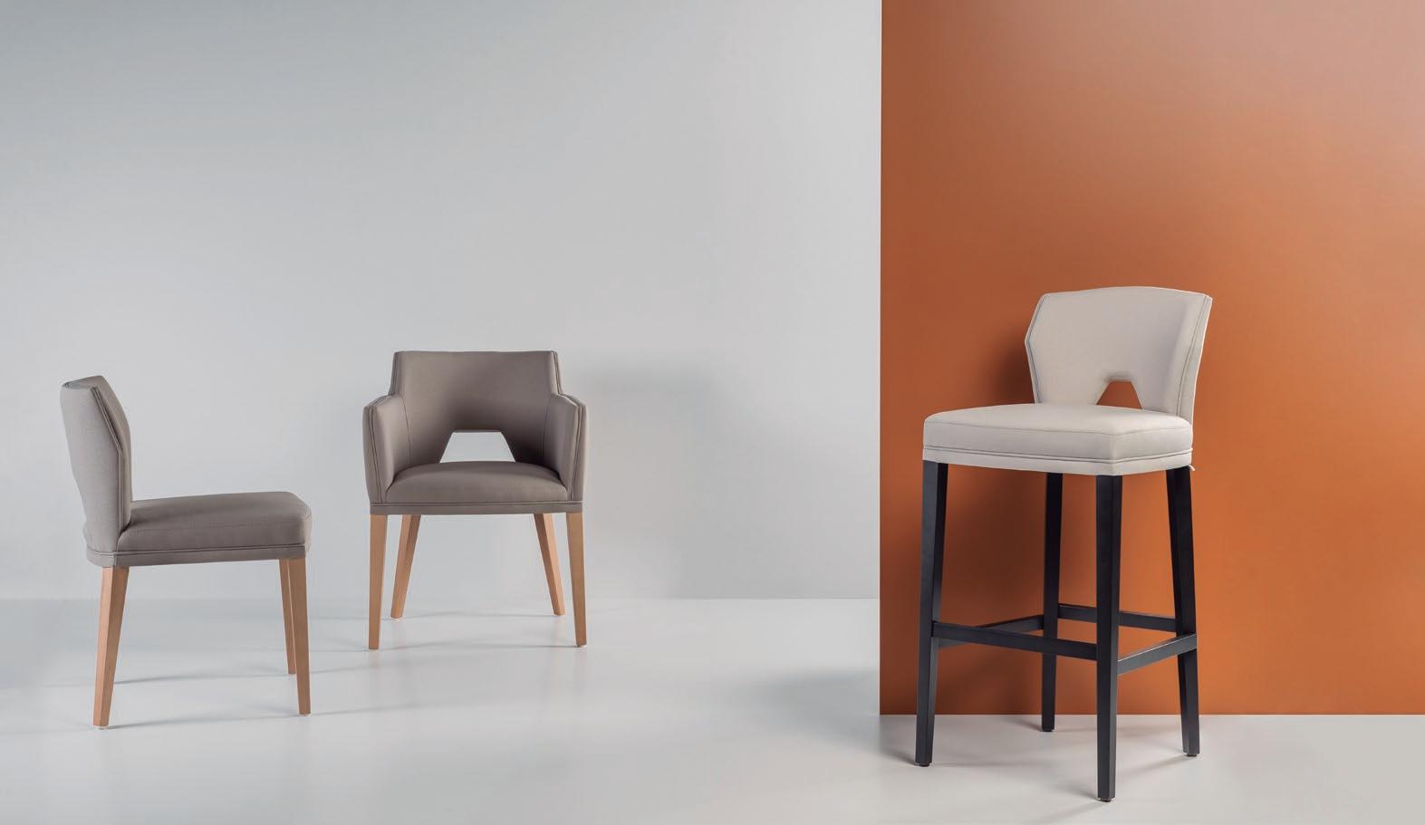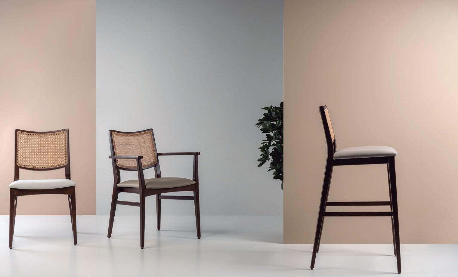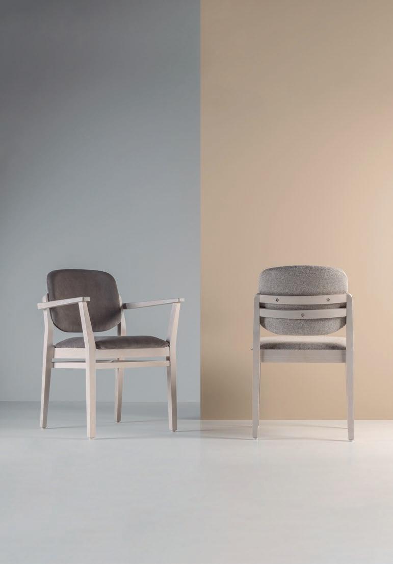Suzanne is a chair that combines the naturalness of solid wood with careful ergonomics and structural resistance. Its essential design is juxtaposed by its smooth lines, which balances and characterises its structure. It is made up of wood options with upholstered seat. It is a perfect chair for both public and private spaces due to its resistance, stackability and simple and light design.