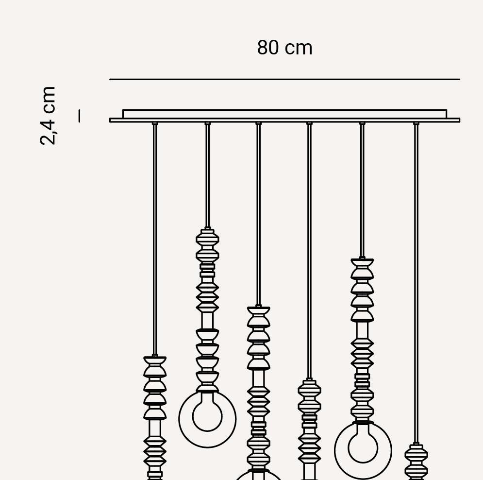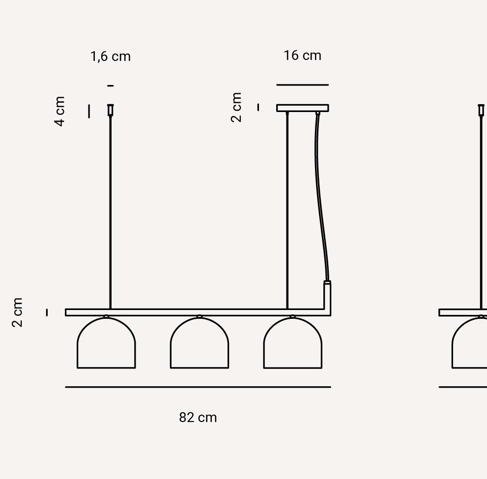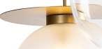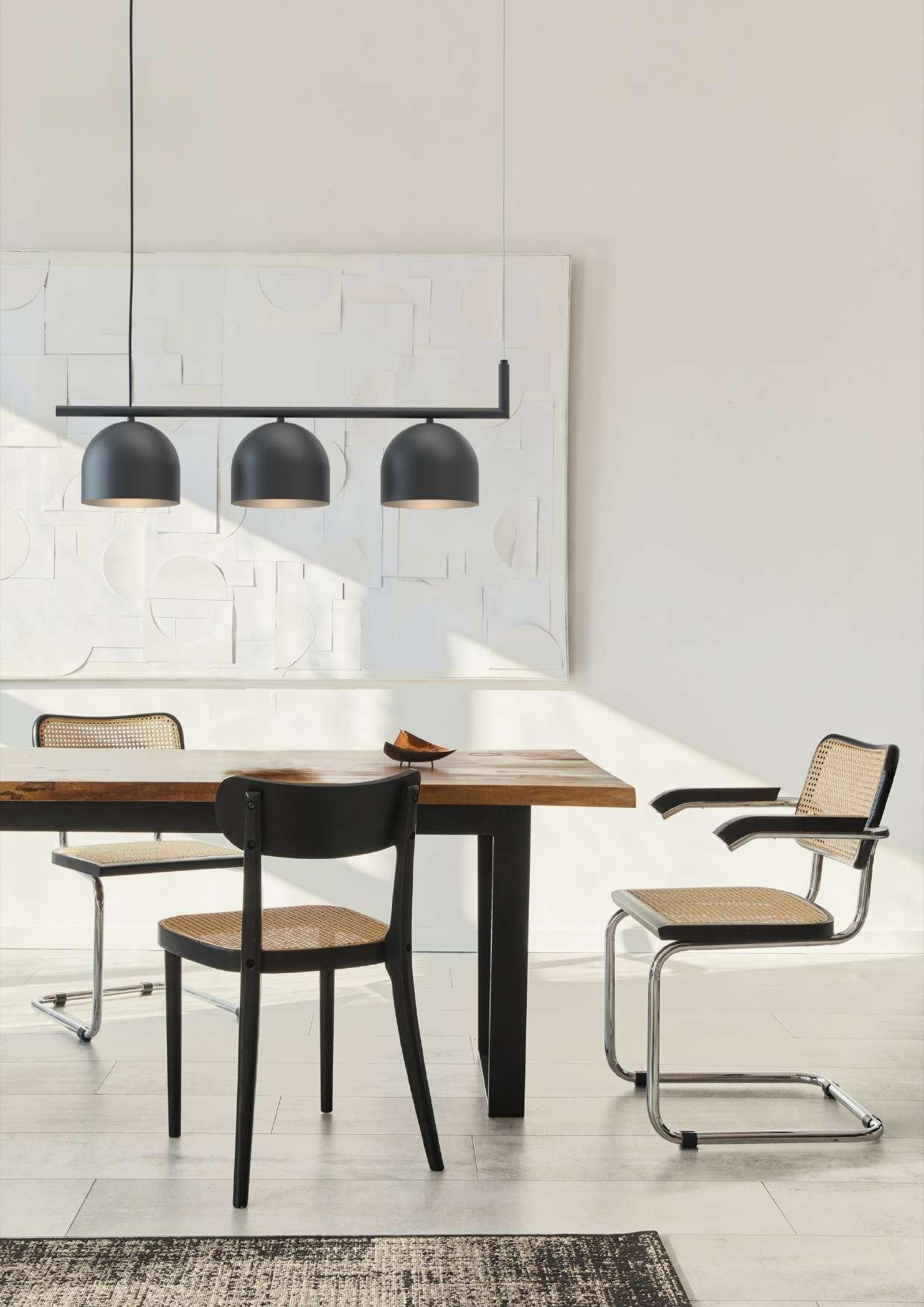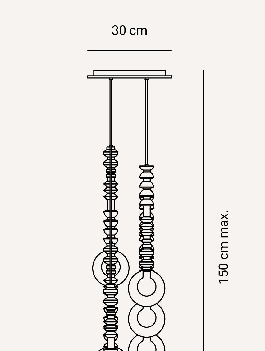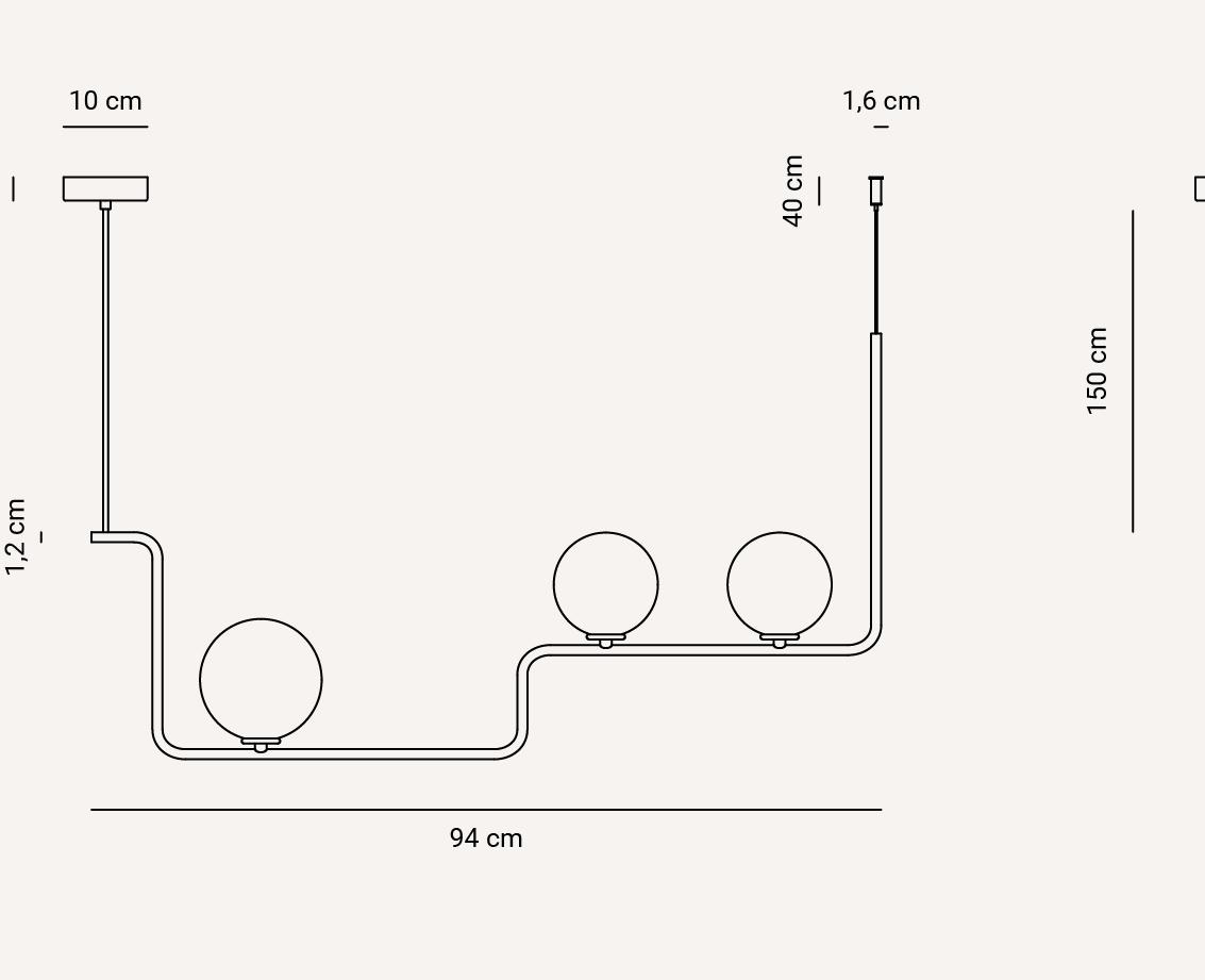 El diseño geométrico y la simplicidad de las líneas dan a la lámpara un aspecto escultórico, mientras que la disposición asimétrica de los globos aporta un dinamismo visual.