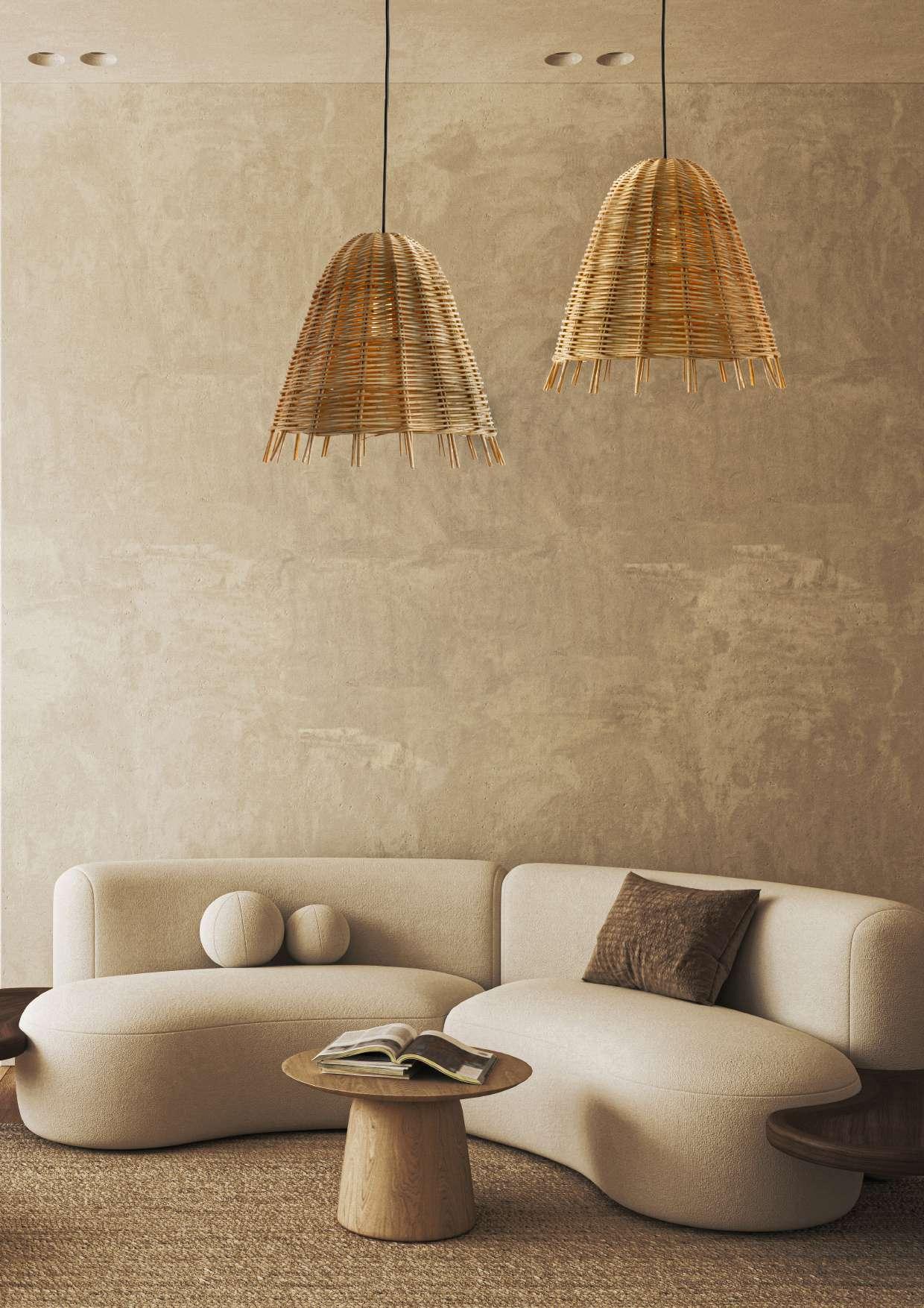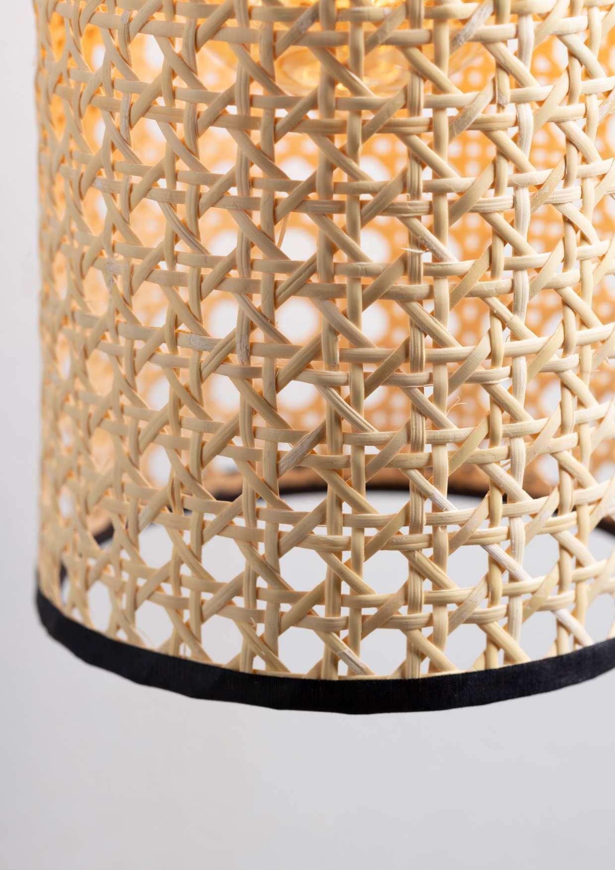 Lo que realmente destaca en esta lámpara es, sin duda, su construcción de mimbre, elaborada de manera artesanal por hábiles artesanos. Emite una cálida luz que se filtra a través de los delicados huecos de la propia estructura de mimbre Esta lámpara combina genial con tonoes beiges, marrones y blancos.