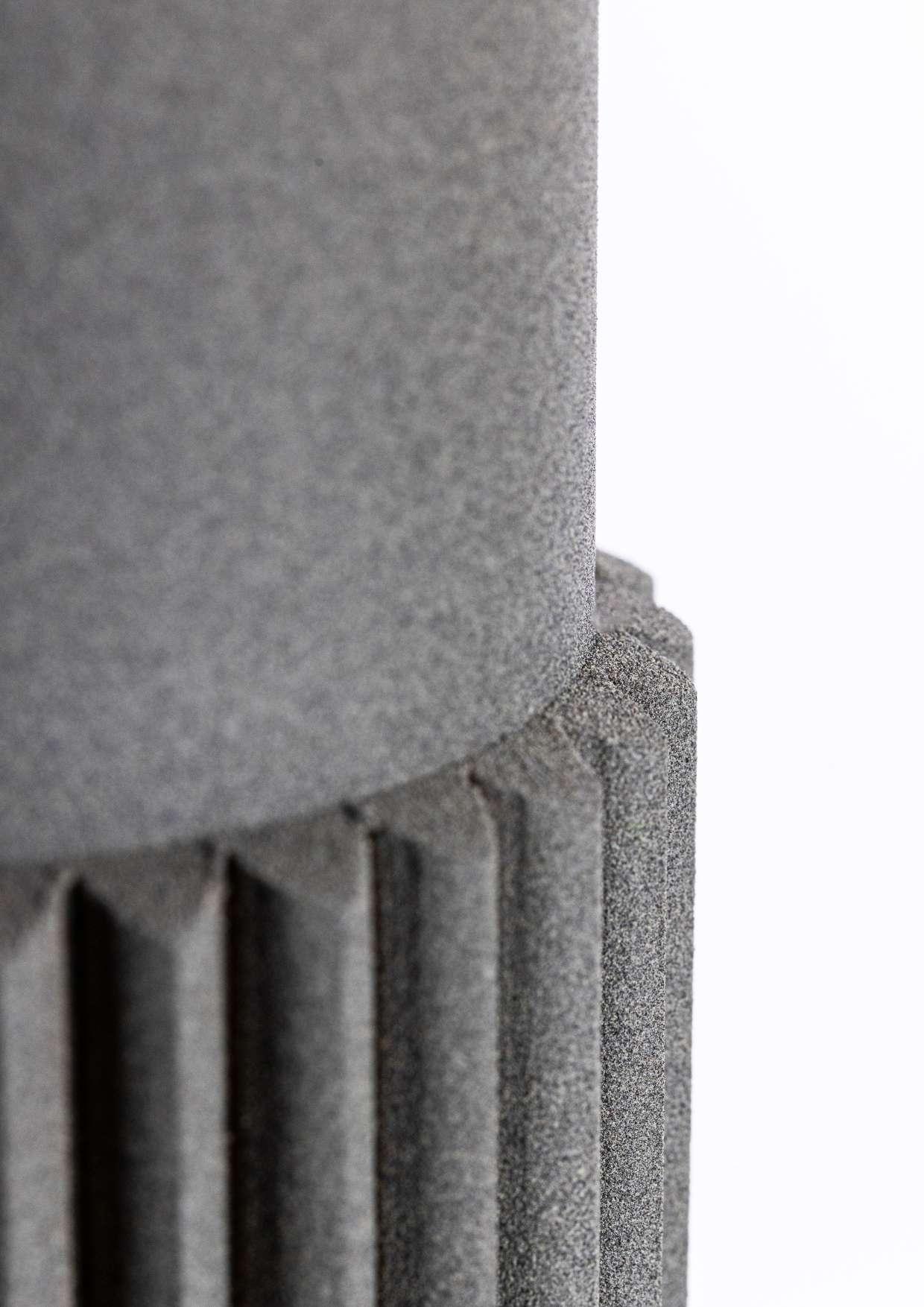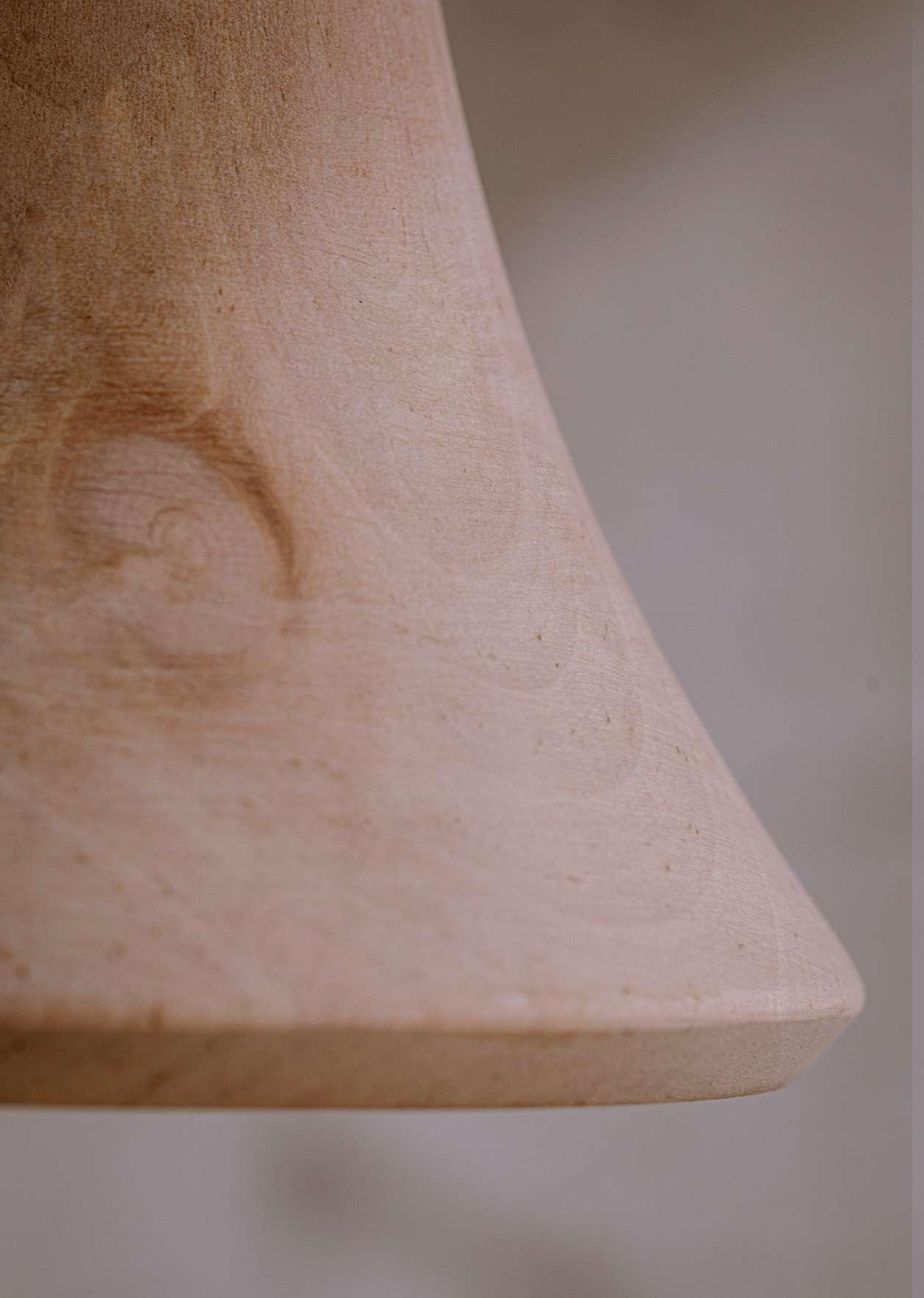 Conus de diseño cónico cuenta con un acabado en madera con su grano natural visible y en cemento mate, aporta una calidez orgánica y una textura sutil que es a la vez contemporánea y atemporal. El material de madera, con su acabado liso y tonos claros, evoca una sensación de proximidad a la naturaleza y artesanía cuidadosa.