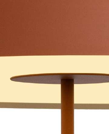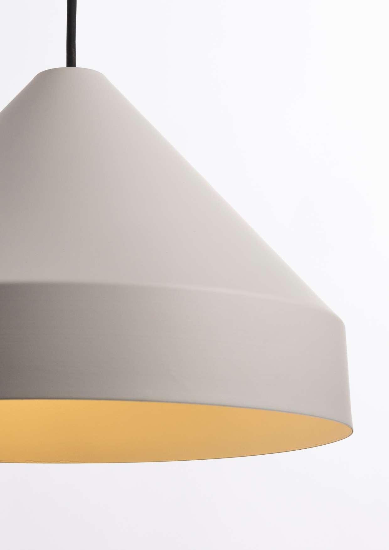 Esta variación matiene la simplicidad y elegancia del diseño anterior, pero introduce una tulipa con forma cónica que le confiere una nueva dimensión estética y funcional. La tulipa cónica, disponibles en tonos terracotas y azules, se ensancha suavemente hacia la base y se estrecha hacia el punto donde se une al soporte, una clásica silueta que proyecta la luz de manera directa y focalizada, perfecta para crear una iluminación ambiental o de tarea.