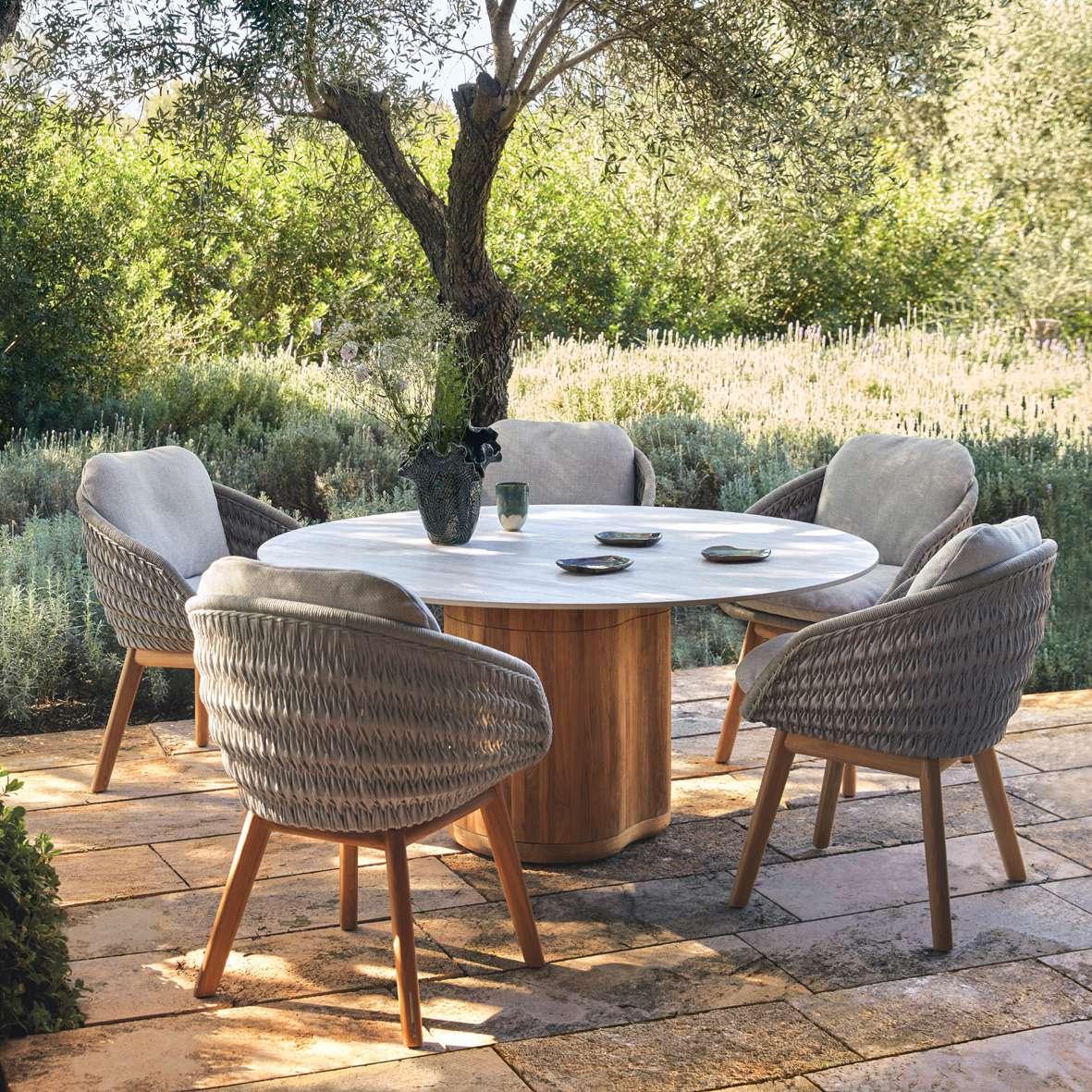 Inspired by the fusion of nature’s elegance and timeless design, the Ogado collection invites you to enjoy the beauty of organic shapes and inviting textures. Crafted with high-end precision and careful attention to detail, each piece reflects the graceful lines found in nature, from the flowing table tops in ceramic or teak to the unique, sculpted wooden bases inspired by natural forms. Find tranquility and balance in the blend of teak wood and ceramic, creating a calm, soothing atmosphere in any outdoor space.