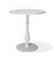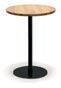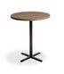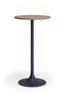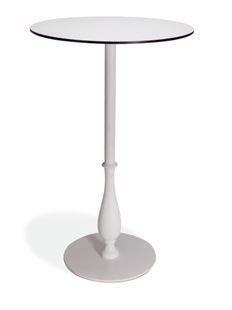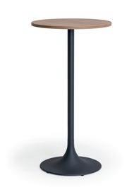 Colección de mesas con columna y base metálica en forma de cruz, con un estilo sencillo que encaja en cualquier espacio.