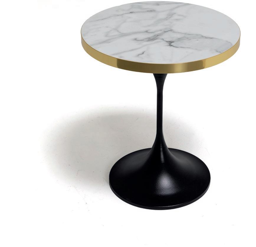 Fibreboard base available in thickness of 30 or 50 mm, with white or black marble effect laminate finish. Straight edge in gold or silver coloured laminated PVC, with smooth glossy or brushed finish options.