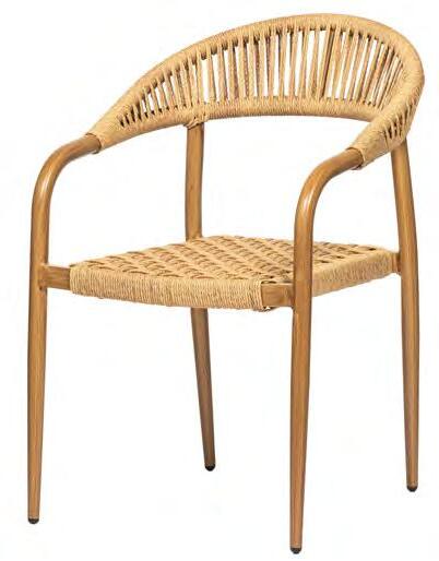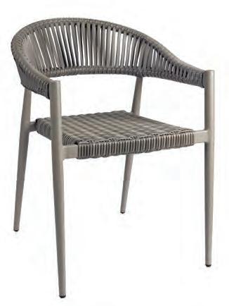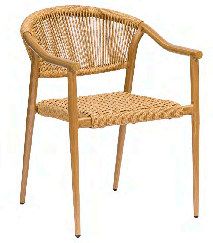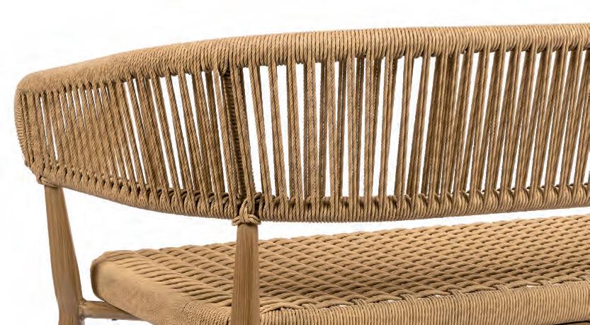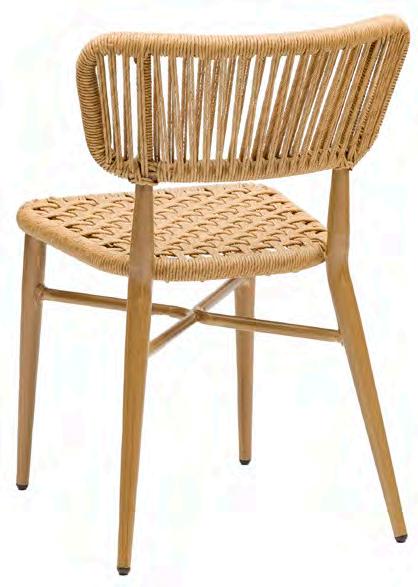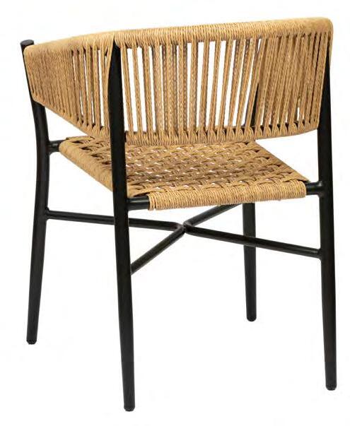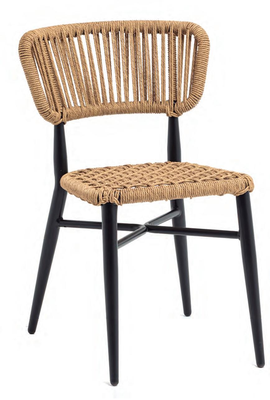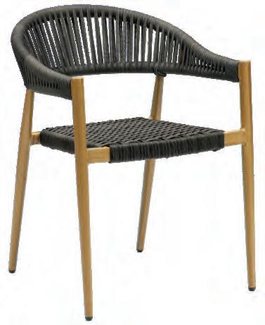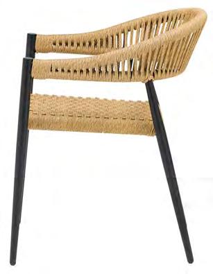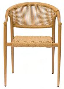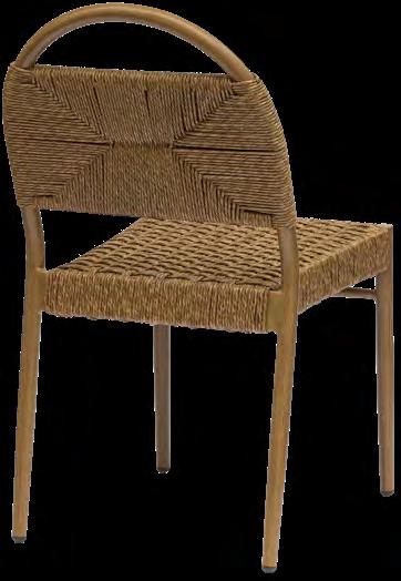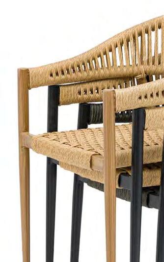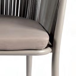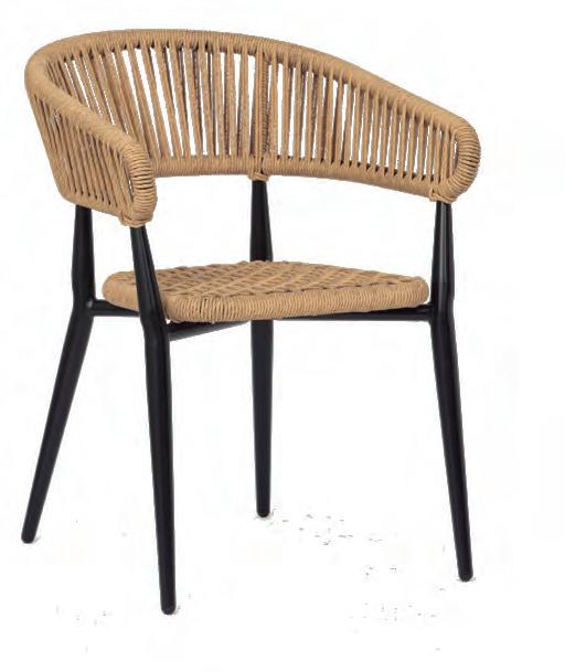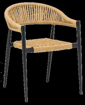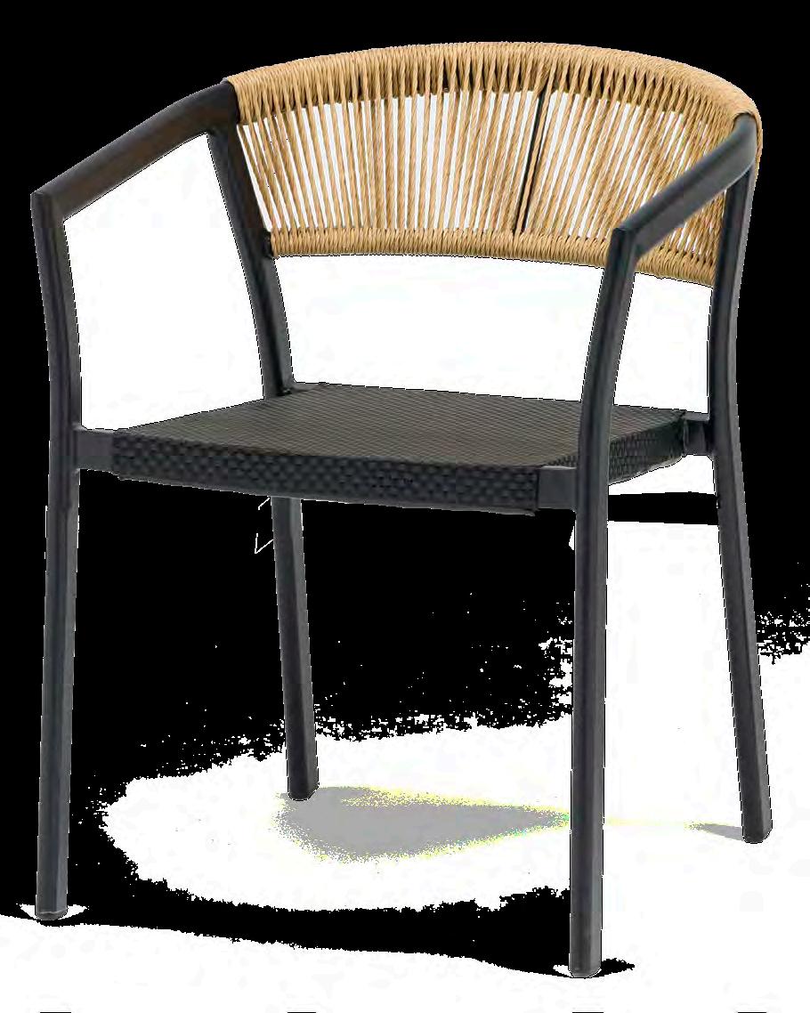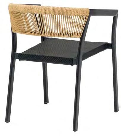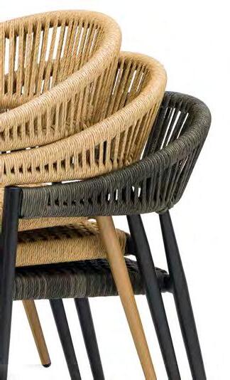 Comodidad y elegancia llevando el estilo Rope a nuevos diseños en combinación con textilene en una estructura resistente, ligera y apilable.